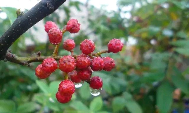 《诗经》中除这一篇《椒聊》之外,另有《东门之枌》亦曾提到花椒:「视尔如荍,贻我握椒」——同样是欢喜赞美之语,以花椒的丰产多子为定情信息。后人更是在它身上呼应出五行之说,如《广群芳谱》即载「椒稟五行之精,叶青、皮红、花黄、膜白、子黑」,且不论其香气与善繁衍的特性,本身已足够吉利。