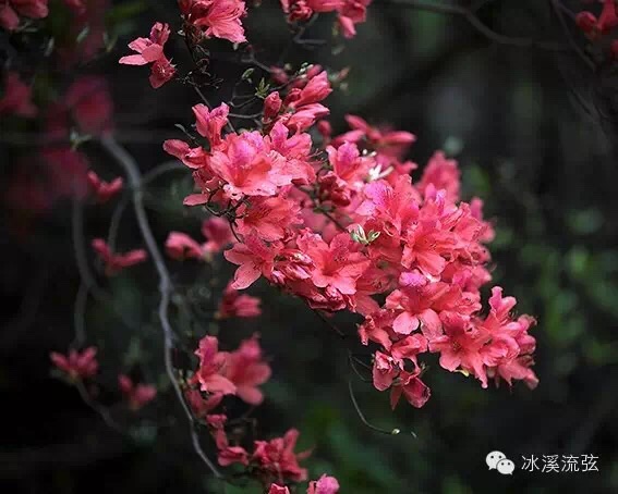 那都是些高大的乔木,高高的树枝密密匝匝地伸向蓝天,有的郁郁葱葱、俊秀挺拔;有的曲若虬龙、苍劲古雅……在谷底密林抑或是高不可攀的山巅悬崖,众多千年杜鹃树,书法笔画般遒劲的枝干上聚集着八、九朵杜鹃花,那形状颇似一座花塔。五枚花瓣精致排列成喇叭状,花心里向阳的半边点缀着比花自身颜色稍深的斑点,像是花蕊留下的投影,有一种清新,有一种淡雅,自然而然地让人联想起那些俊逸的水墨画。