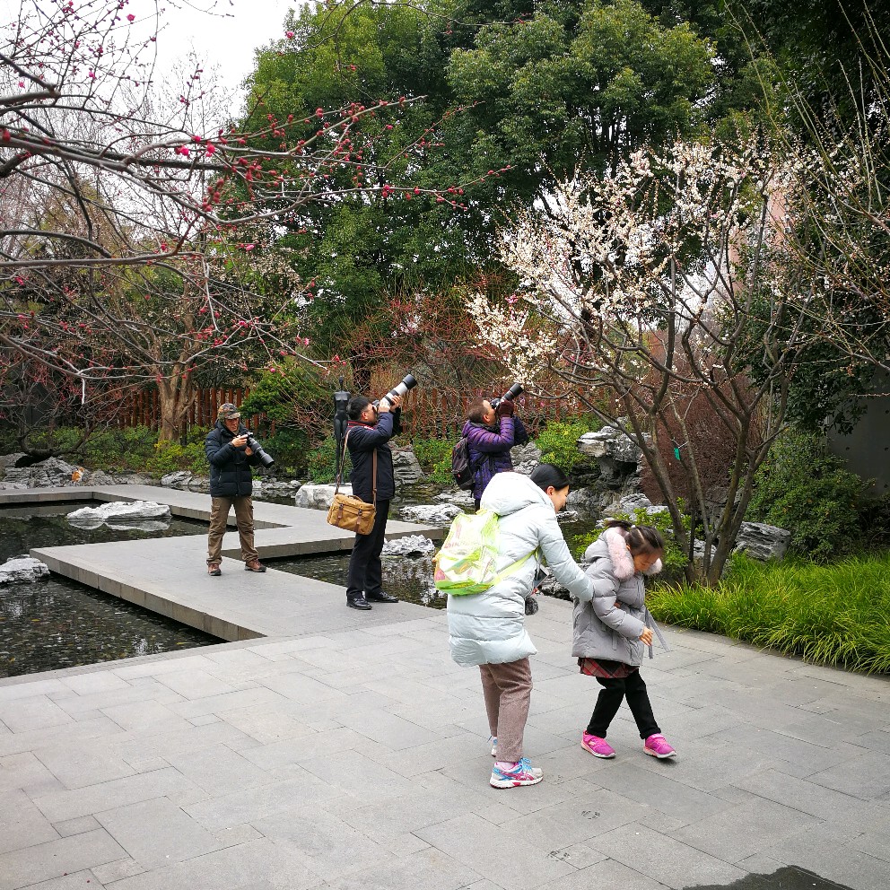于是对着柔柔的、含蓄的、奔放的、内敛的梅花一路欣赏过去,拍照是少不了的。只是这天的气温太低,拍到最后双手都冻僵了。但不知这用大炮捕捉花影的大叔们,手冷不冷?(仔细瞧,最前面的那位,戴着厚厚的手套呢!)