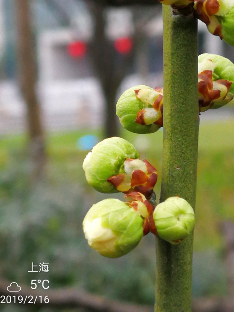 花苞很漂亮。 才5度!很冷耶,我们这儿街上都看得到有人穿短袖了,气温19~25度。