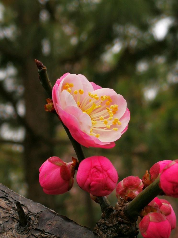 自从春节前在雕塑公园看到零星几朵提前开放的梅花,并发现那里种植有好多个品种的梅树后,就一直对此念念不忘。南方花友说那边的梅花已经变成了梅子了,而不南不北的上海,最近苦于阴雨天,气温偏低,不知道怎么样了。于是在春节后的第一个周六,趁着没有下雨的好机会,一个人来到了雕塑公园(其实就是在上海自然博物馆旁边)。