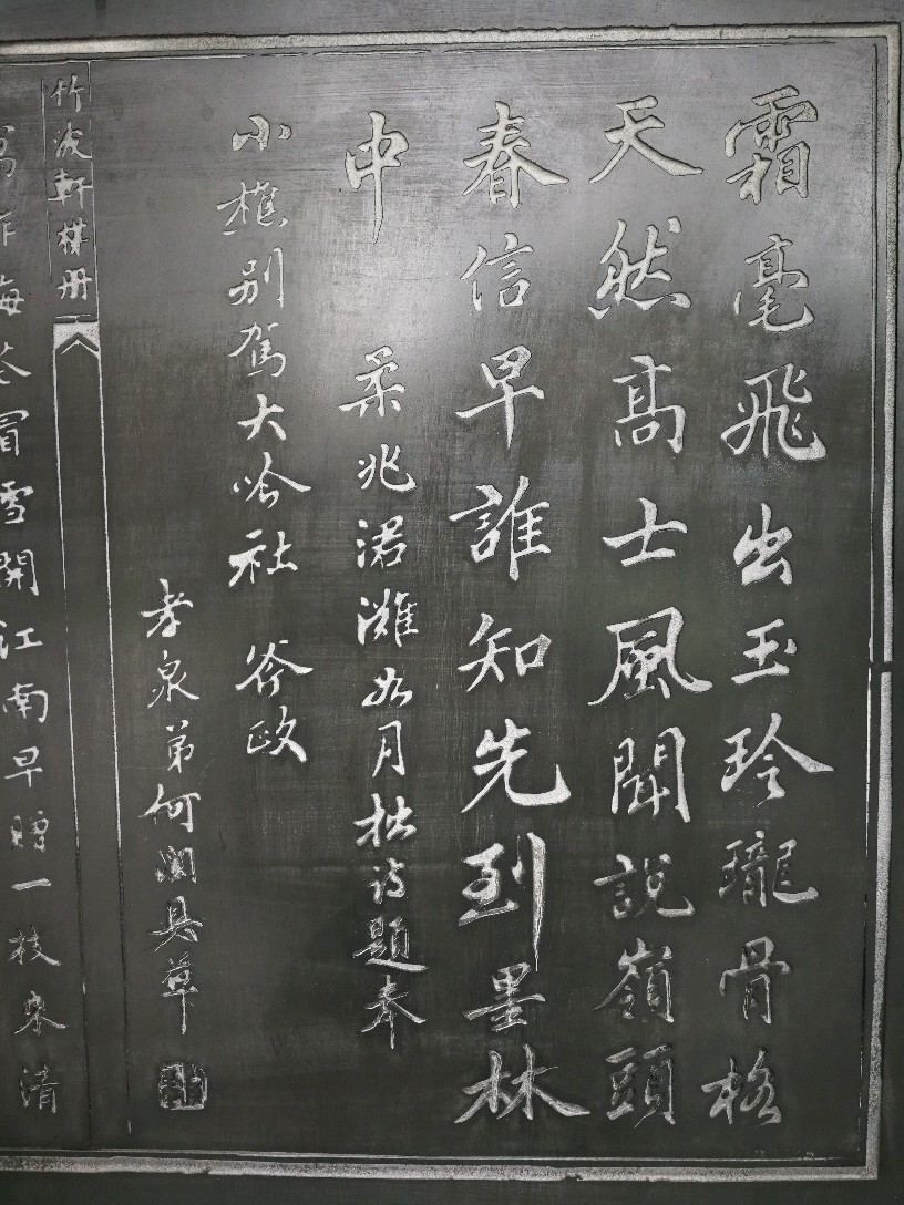 “霜毫飞出玉玲珑,骨骼天然高士风”刻在钢板上的咏梅诗词及梅花