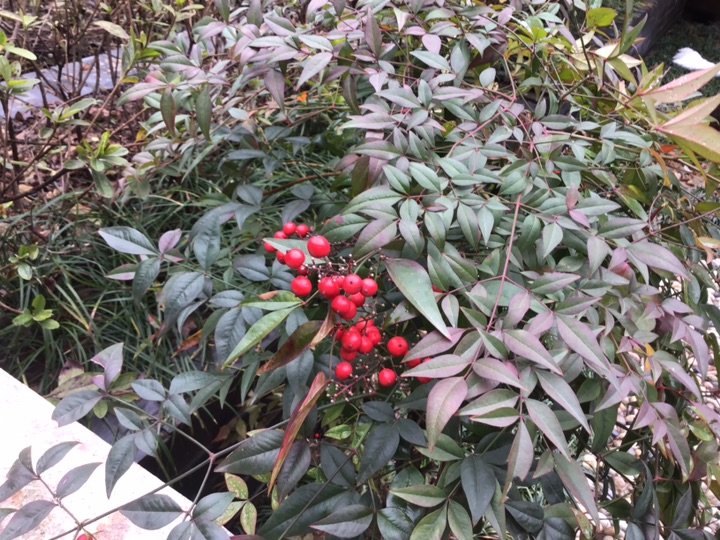最近去同学家,在他们家的后院里发现了一株南天竹