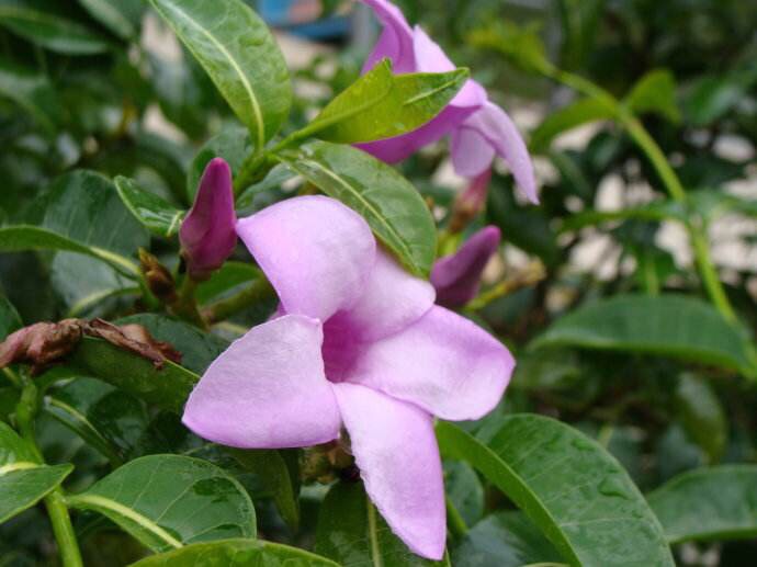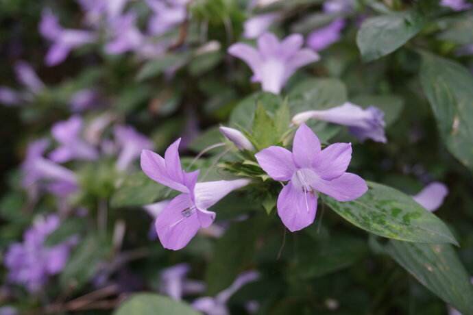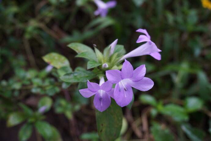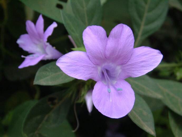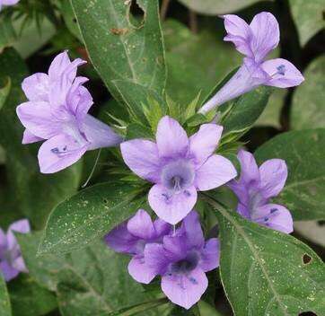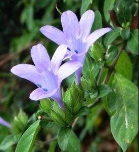 假杜鹃(Barleria cristata L.):爵床科,假杜鹃属小灌木,高达2米。茎圆柱状,被柔毛,有分枝。叶柄长3-6毫米,叶片纸质,椭圆形、长椭圆形或卵形,长3-10厘米,宽1.3-4厘米,侧脉4-5(7)对;腋生短枝的叶小,具短柄,叶片椭圆形或卵形,长2-4厘米,宽1.5-2.3厘米,叶腋内通常着生2朵花。短枝有分枝,花在短枝上密集。花的苞片叶形,无柄,小苞片披针形或线形,长10-15毫米,宽约1.5毫米。花冠蓝紫色或白色,2唇形,通常长3.5-5厘米,有时可长达7.5毫米,花冠管圆筒状,冠檐5裂,长圆形;子房扁,长椭圆形,无毛,花盘杯状。蒴果长圆形,长1.2-1.8厘米。花期11-12月。