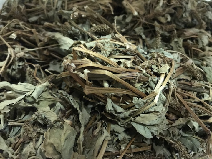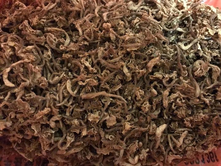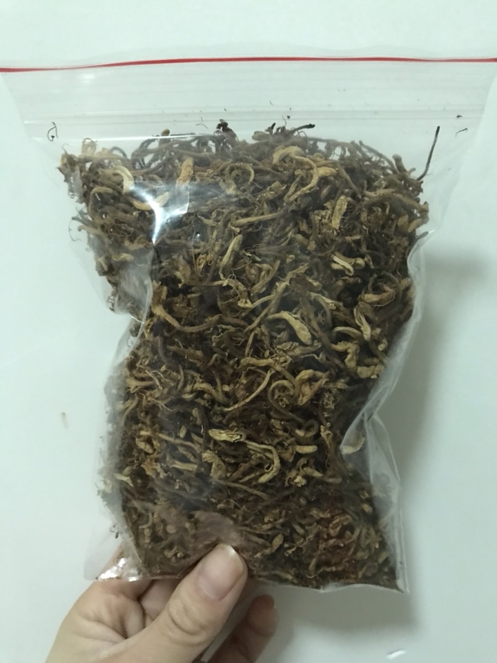 一袋野生鱼腥草干。一把一把的都这么捆好了,想喝的时候拿一把放壶里一煮,清热解毒,利尿除湿,很好的消夏饮品!