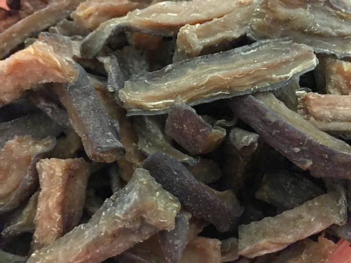 除了留的新鲜红薯外还切了点红薯片和红薯条,这是我带过来的红薯条,因为东西多红薯片就没带了。