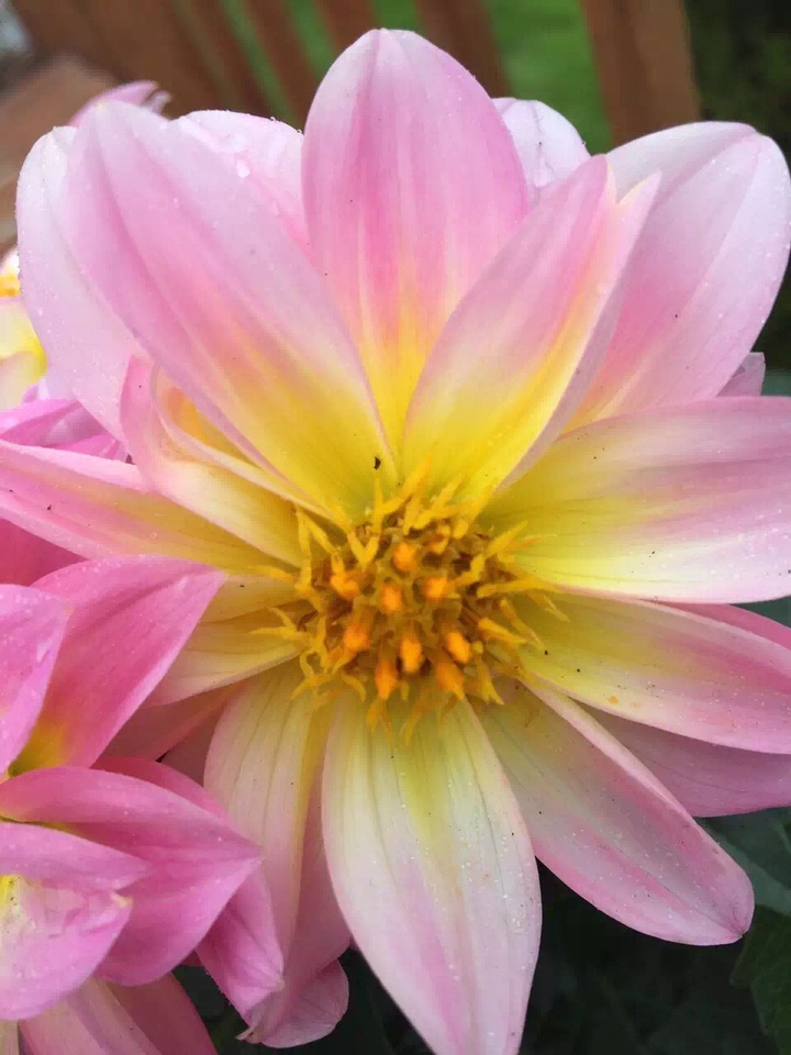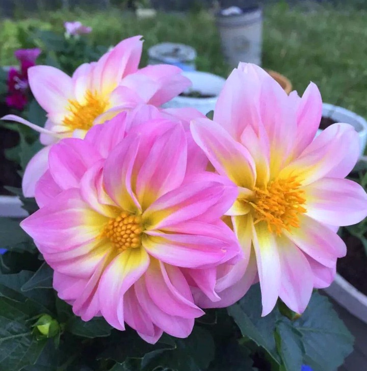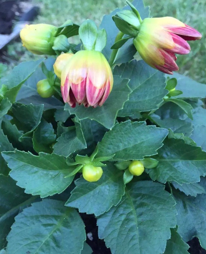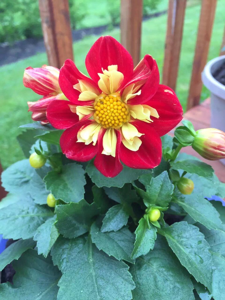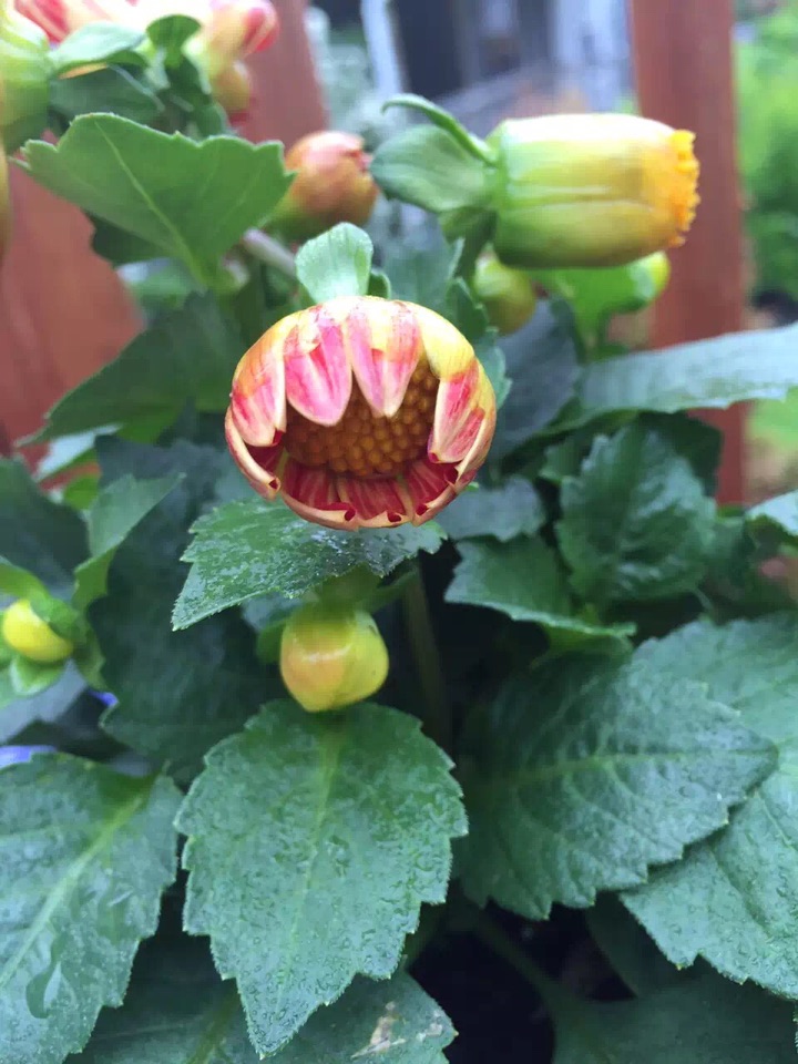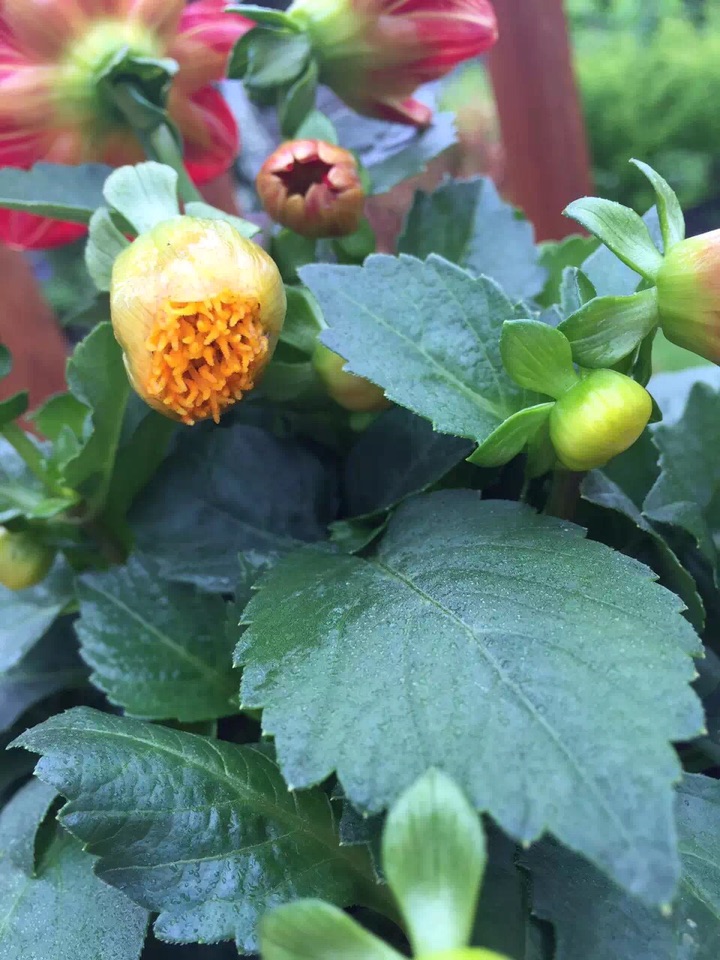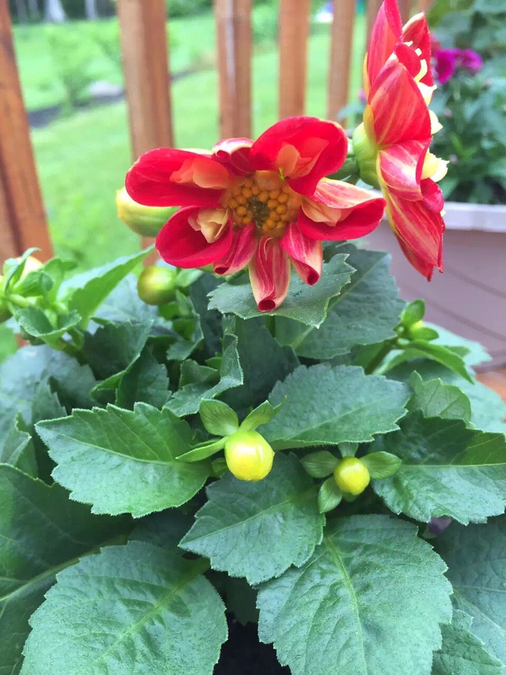 有那么一年,眼光突然被这些清新、秀丽而娇小的一年生大丽花所吸引,更是好奇地了解到这些花原来也可以是一年生哈;因为记忆中小时候妈妈的花园里种有大丽花,那些可是多年生的,植株也高大、伟岸得多,每年到了秋天便开出了大朵、大朵漂亮而亮丽的花儿来。那些美丽、硕大的花朵至今还是家、童年的回忆里抹不去的元素……