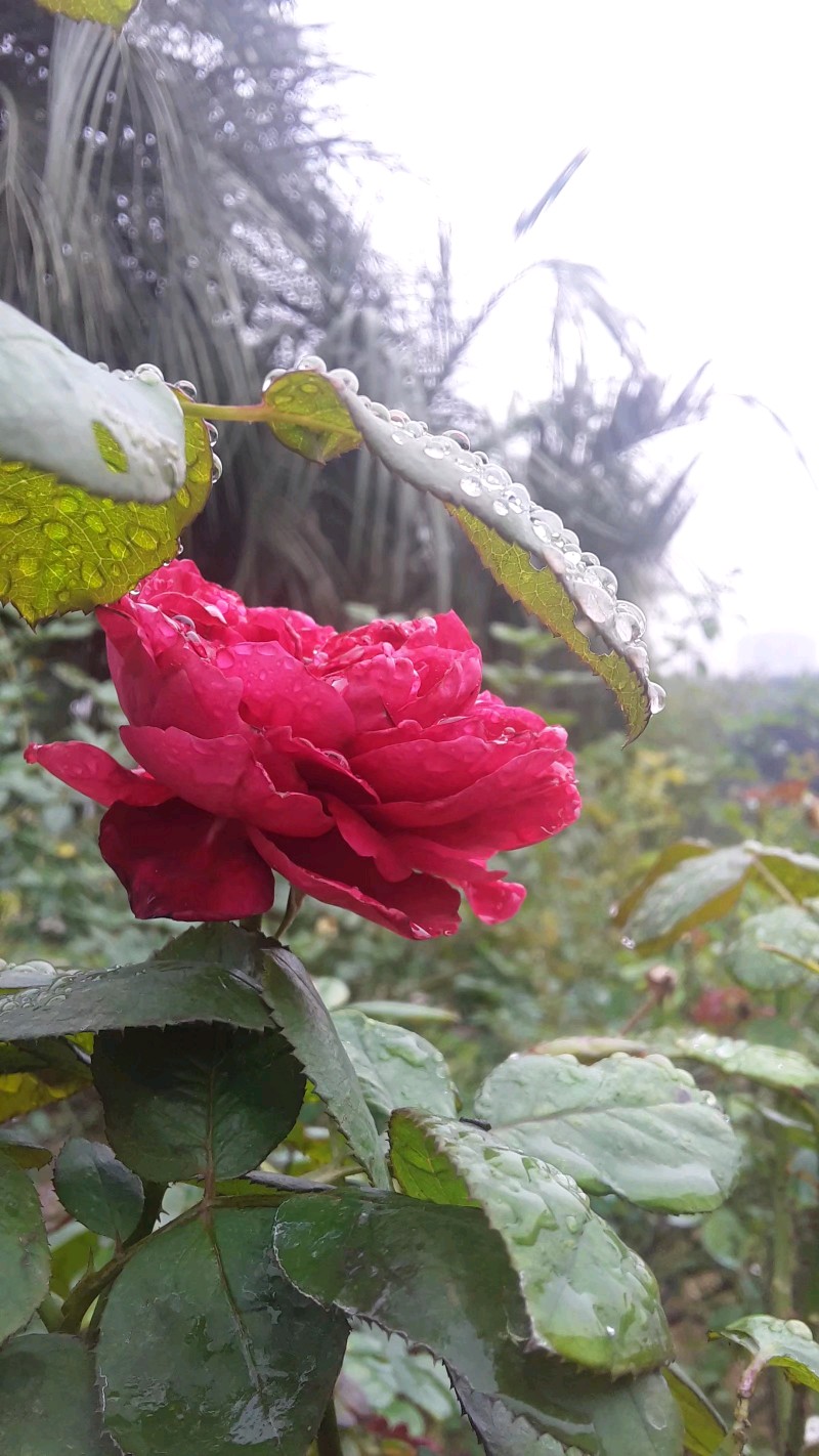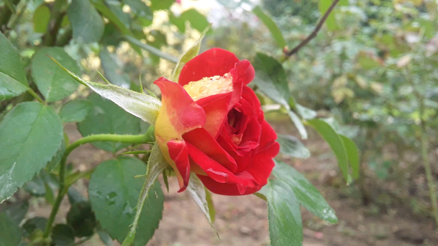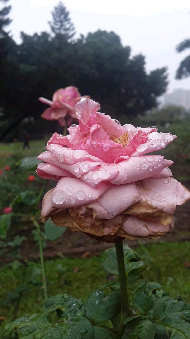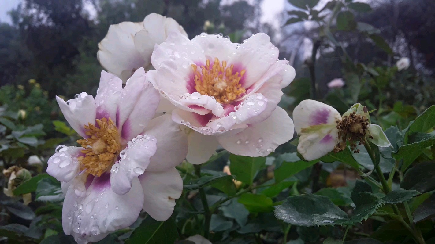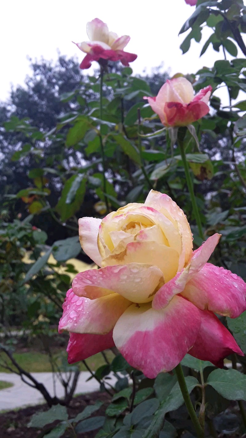 赏月季的那天,刚好下起了小雨,一开始觉得天公不作美,可是看到沾着雨珠的花儿时,又觉得更具一番美感!