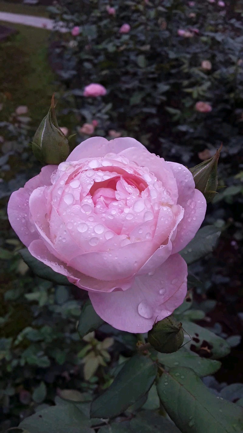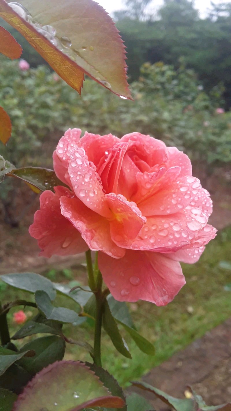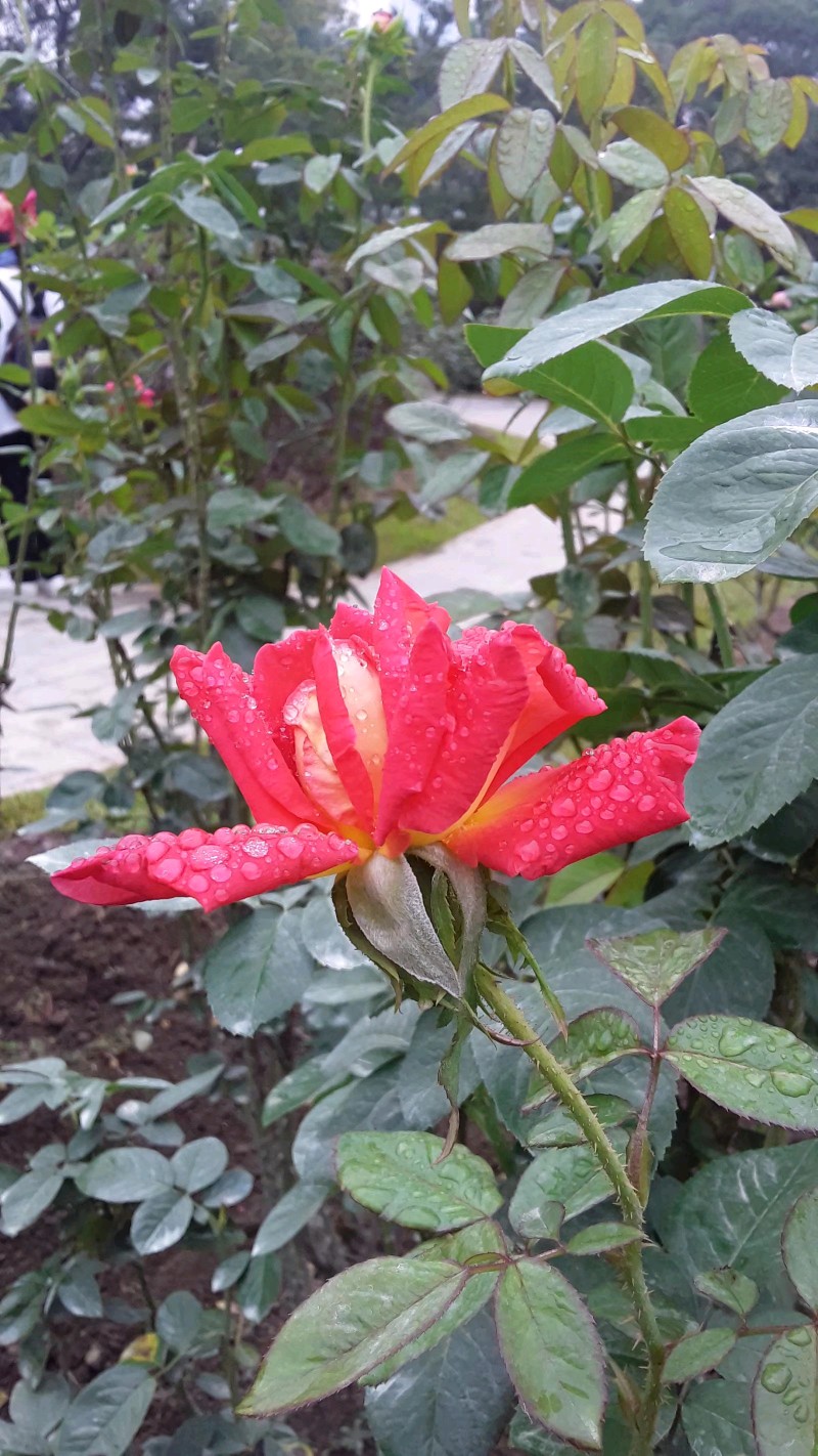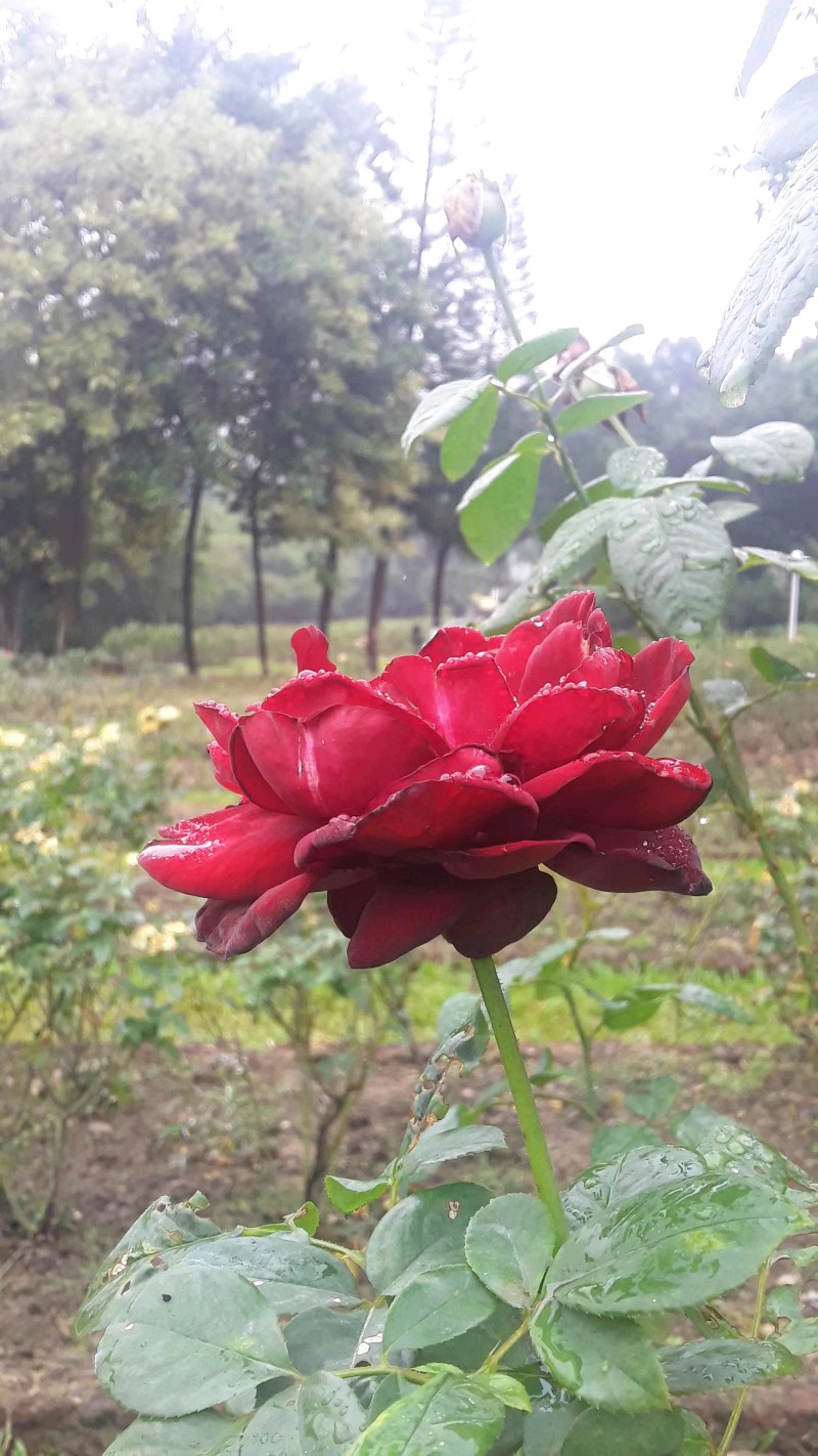 赏月季的那天,刚好下起了小雨,一开始觉得天公不作美,可是看到沾着雨珠的花儿时,又觉得更具一番美感!