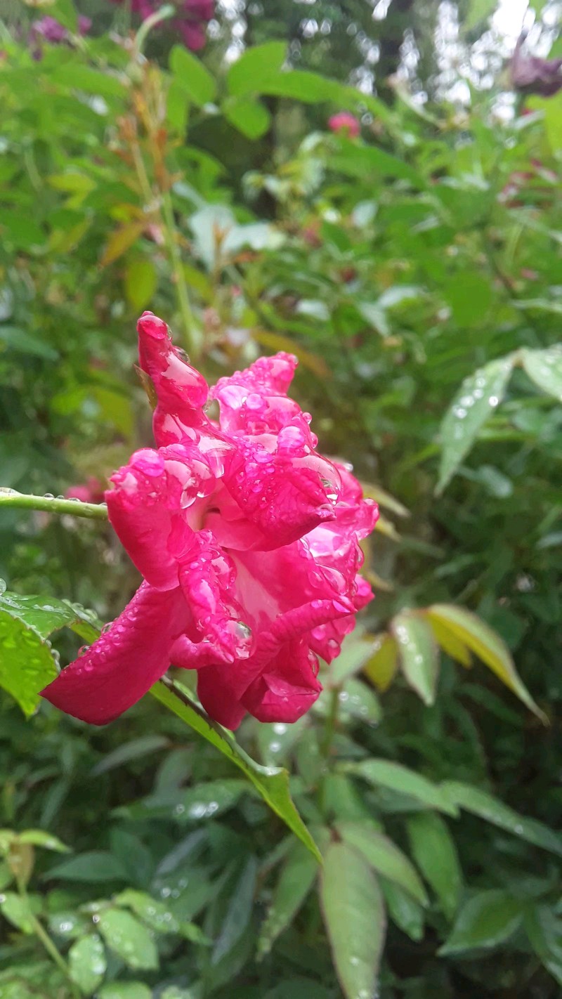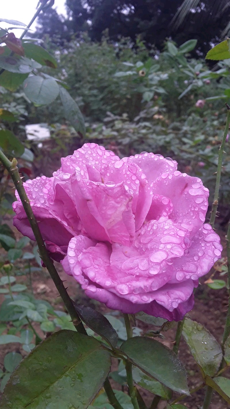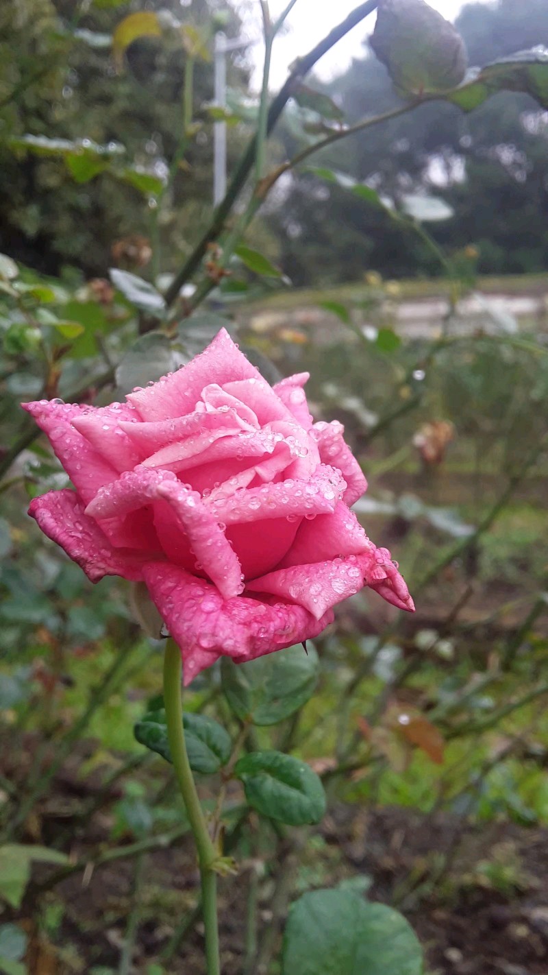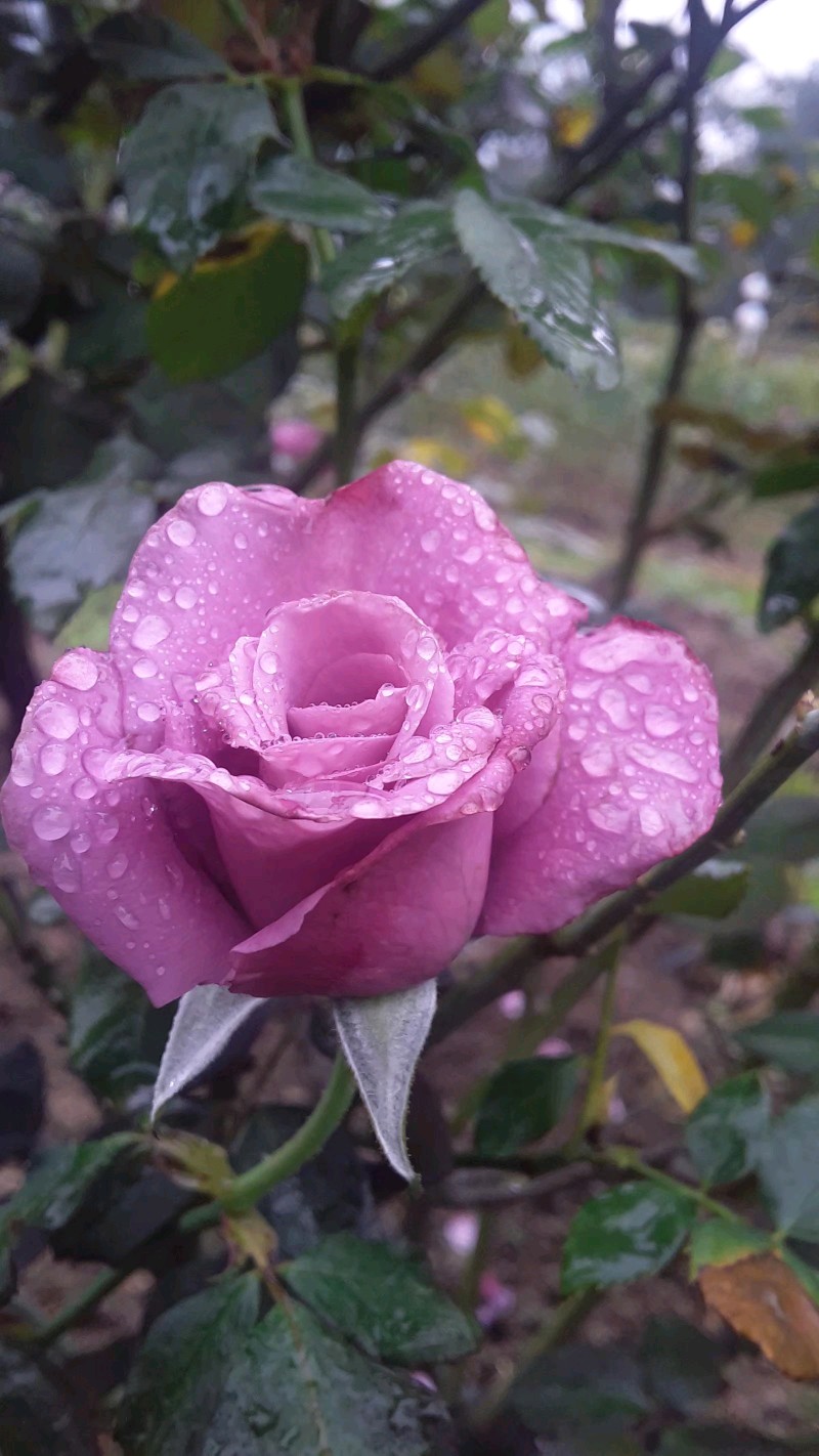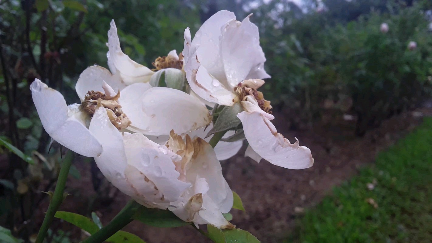赏月季的那天,刚好下起了小雨,一开始觉得天公不作美,可是看到沾着雨珠的花儿时,又觉得更具一番美感!