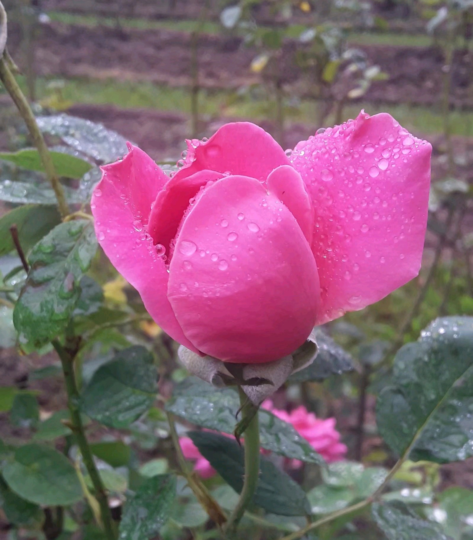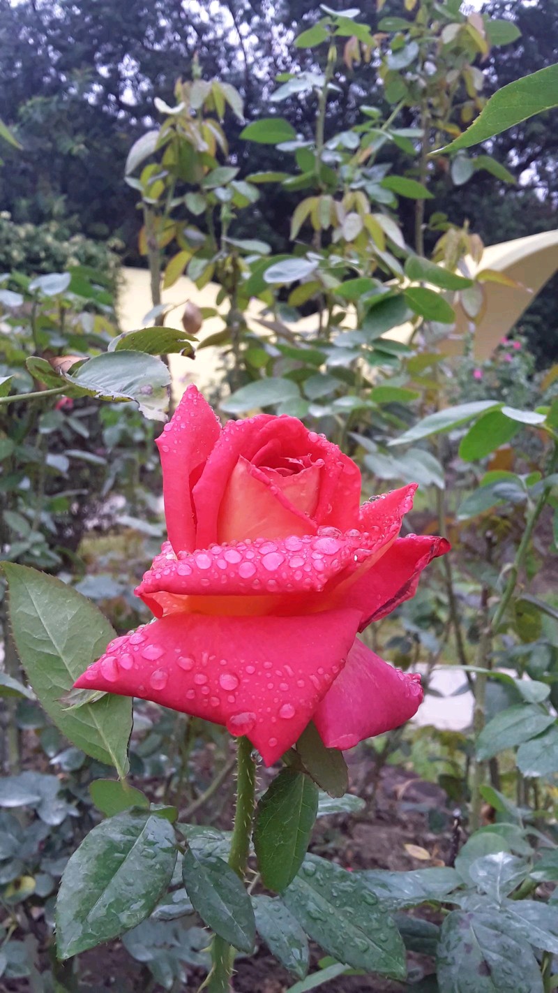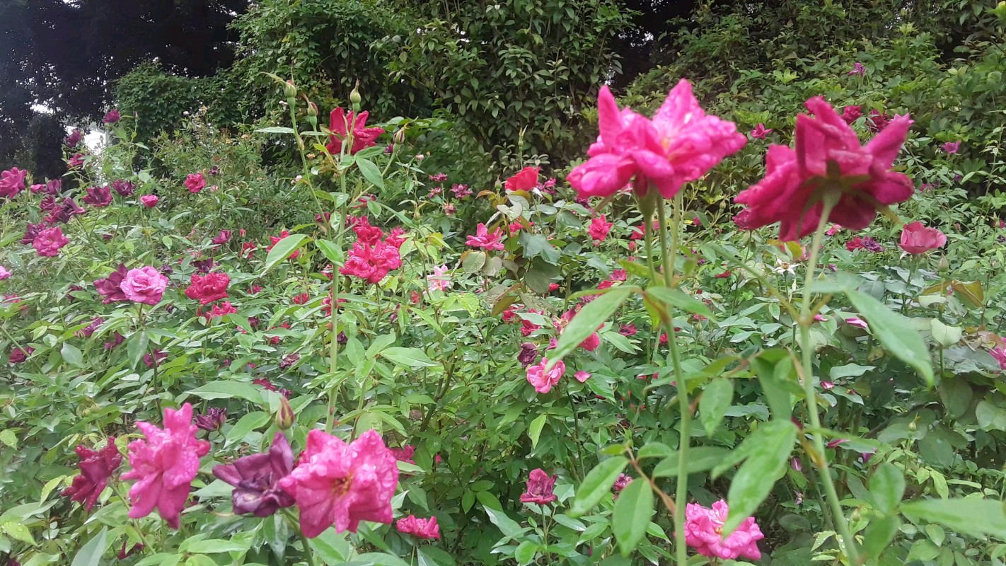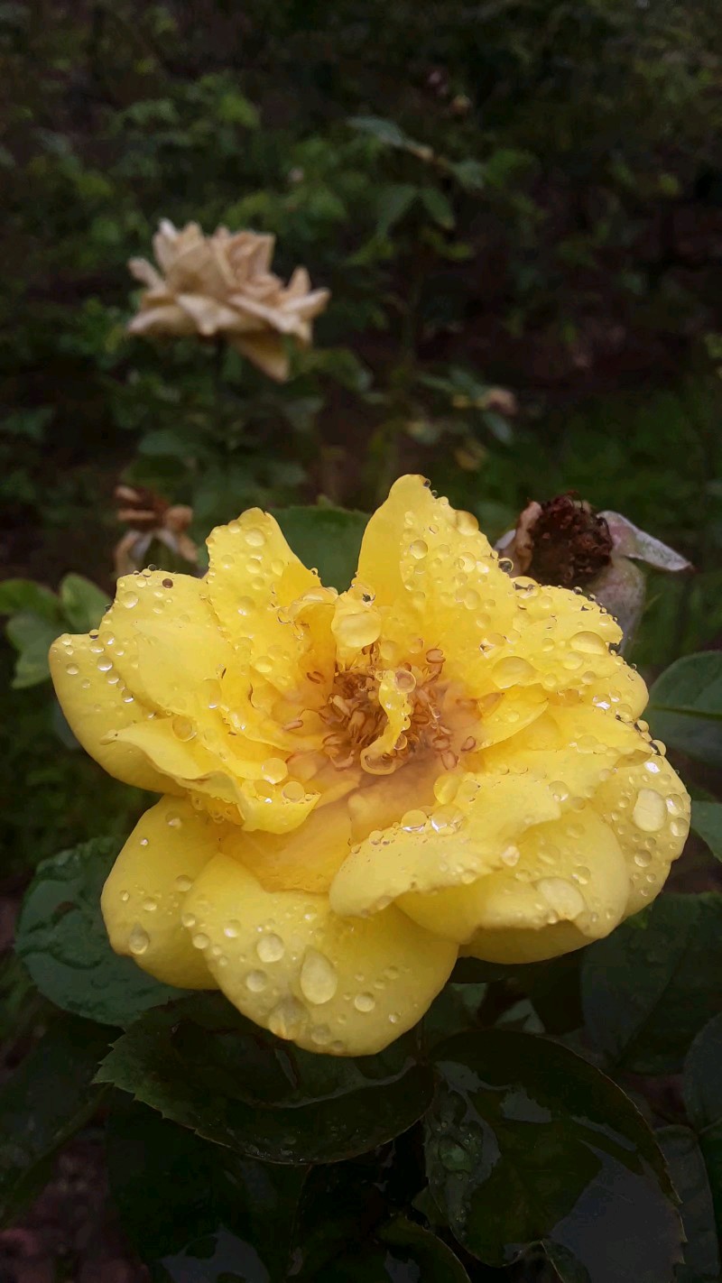 赏月季的那天,刚好下起了小雨,一开始觉得天公不作美,可是看到沾着雨珠的花儿时,又觉得更具一番美感!