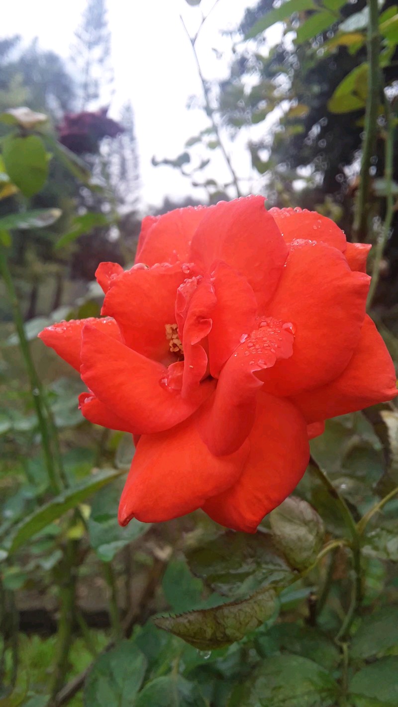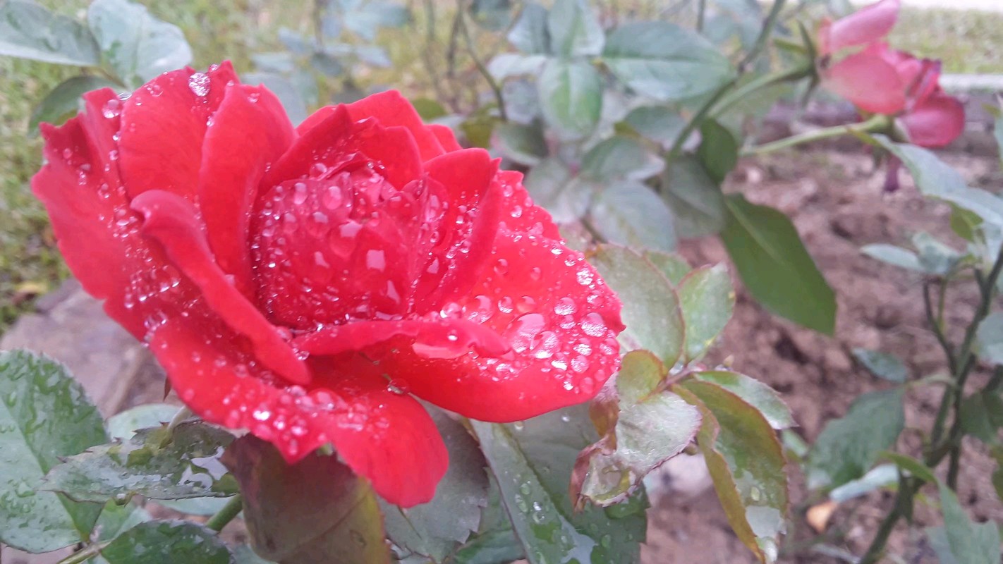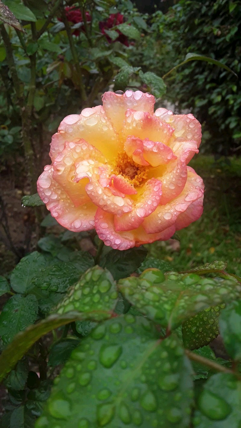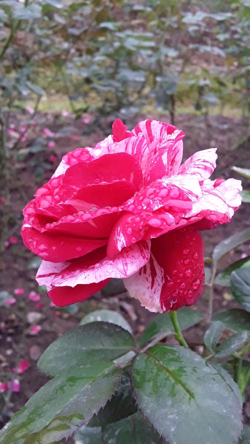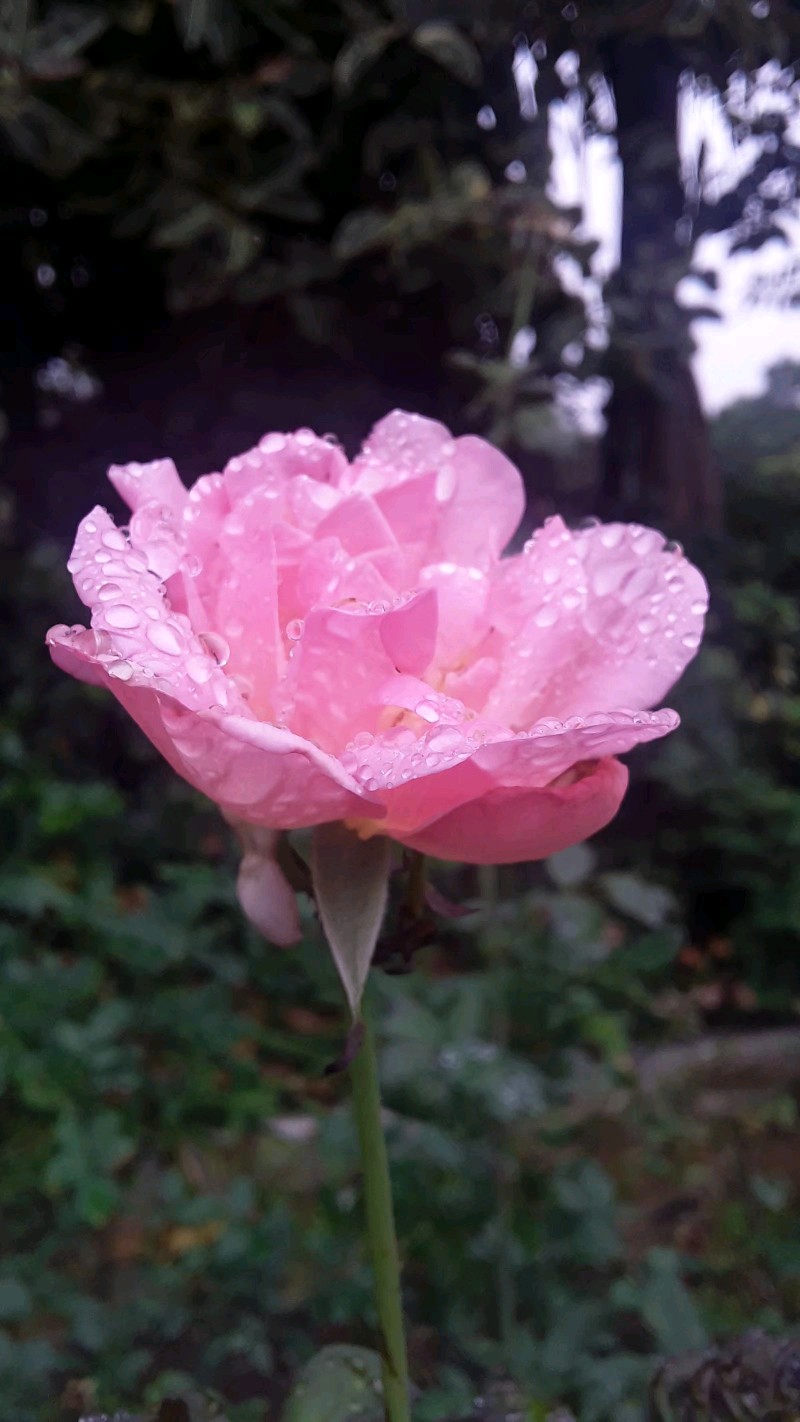 赏月季的那天,刚好下起了小雨,一开始觉得天公不作美,可是看到沾着雨珠的花儿时,又觉得更具一番美感!