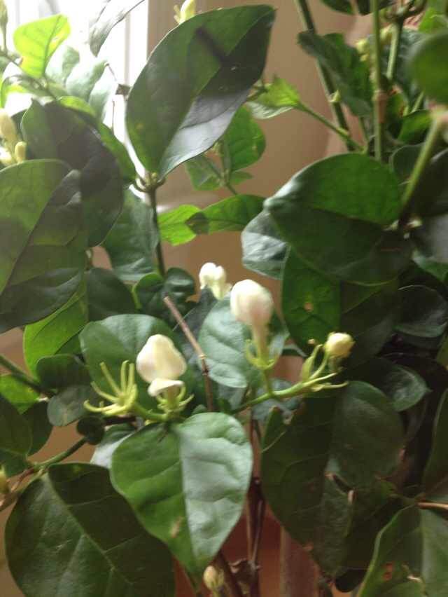 所以在苗圃里偶尔看到有茉莉花卖时喜出望外,毫不犹豫就买了一株回家,喜滋滋地想着以后每天都有茉莉花陪伴啦!确实,刚买时她已有花开,每天早上从楼上往下去厨房时,一抹淡淡的茉莉花香就迎面入鼻、沁入心脾,美好的一天就在香香甜甜的茉莉花香中开始了!可是,好景不长,花树开始蔫了、叶片背面上出现了很多小虫子,又多又密,赶紧去苗圃请教,买了药喷洒,可是没有任何作用,眼看着这棵茉莉花干枯、叶落、最后"光荣”了😭😭