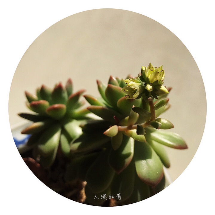 马库斯 Sedeveria Markus 为景天属(Sedum)和拟石莲花属(Echeveria)的杂交品种,叶长钥状,前段斜尖,容易泛红,叶正面平滑,叶背船状凸起,叶色多为绿色、黄绿色到橙黄、粉红色。马库斯叶片呈莲花状紧密排列,养护得当,叶片会显得很包且颜色泛橘泛红,非常迷人,更多的情况则是下部叶片平展开,仅中心叶片略包,只要不绿油油,还是挺迷人的,一旦绿油油和蒂亚很像。