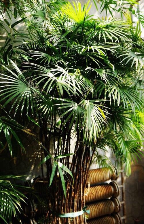 棕竹,(学名:Rhapis excelsa (Thunb.) Henry ex Rehd.)又称观音竹、筋头竹、棕榈竹、矮棕竹,为棕榈科棕竹属常绿观叶植物。有叶节,包以有褐色网状纤维的叶鞘。丛生灌木,高2-3m,茎干直立圆柱形,有节,直径1.5-3cm,茎纤细如手指,不分枝,有叶节,上部被叶鞘,但分解成稍松散的马尾状淡黑色粗糙而硬的网状纤维。
