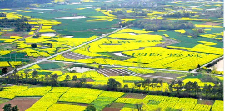 油菜花田在慢城桃花扇广场周边的大山村,到了每年油菜花盛开的季节,桠溪的万亩油菜花海总要在朋友圈里被刷屏,油菜花已经成了桠溪的一张名片。高淳拥有20余万亩优质油菜花田,而且都在山区丘陵地带,盛开后仿佛一片此起彼伏的金色“海洋”,景象极为壮观。