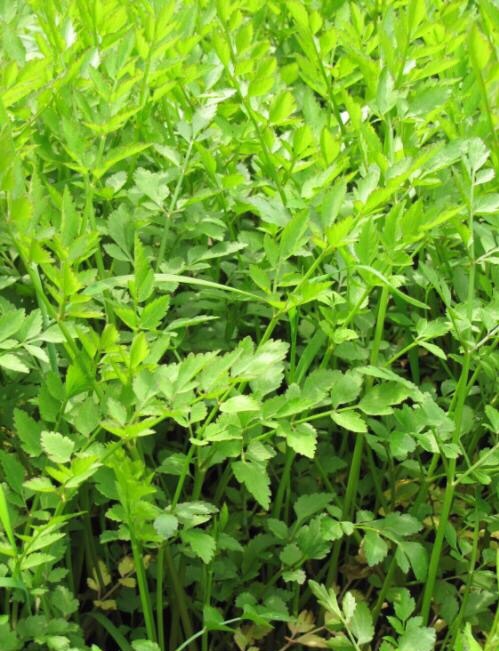 水芹(Oenanthe javanica (Bl.) DC.)是伞形科,水芹属多年生草本植物,茎直立或基部匍匐。基生叶有柄,基部有叶鞘;叶片轮廓三角形。复伞形花序顶生;无总苞;伞辐不等长,直立和展开;萼齿线状披针形,花瓣白色,倒卵形,有一长而内折的小舌片;花柱基圆锥形,直立或两侧分开。果实近于四角状椭圆形或筒状长圆形,侧棱较背棱和中棱隆起,木栓质。花期6-7月,果期8-9月。