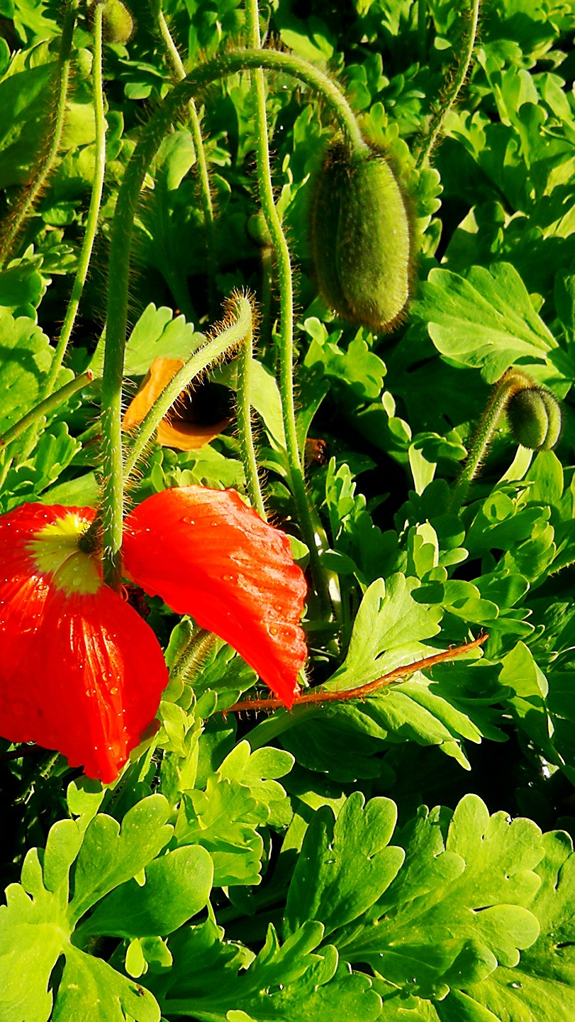 公园里大片的虞美人花开花谢