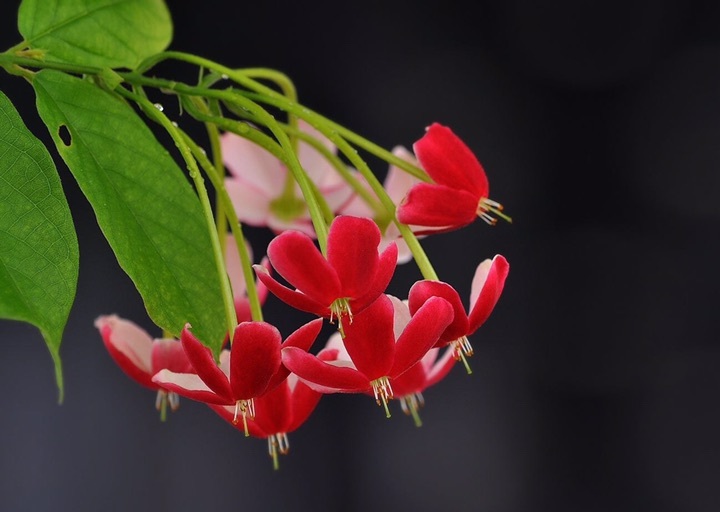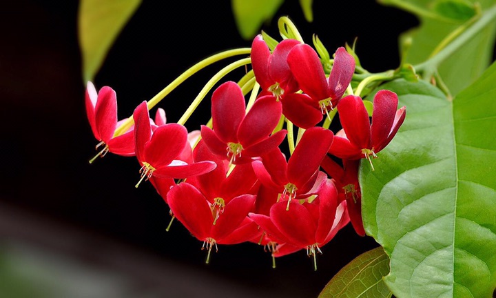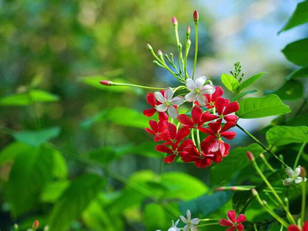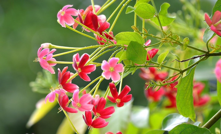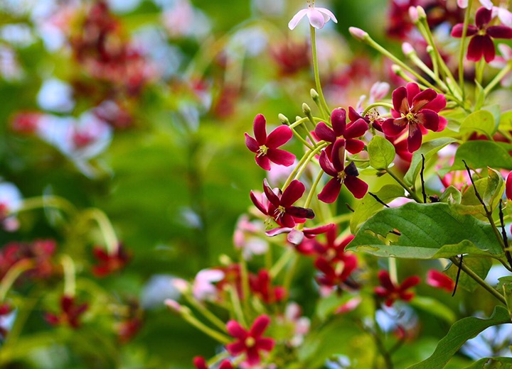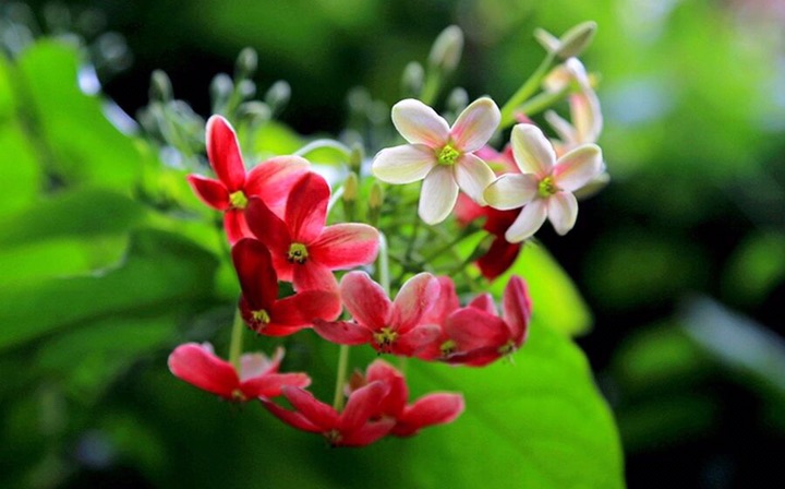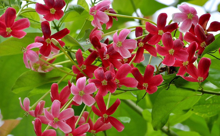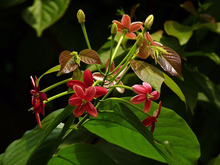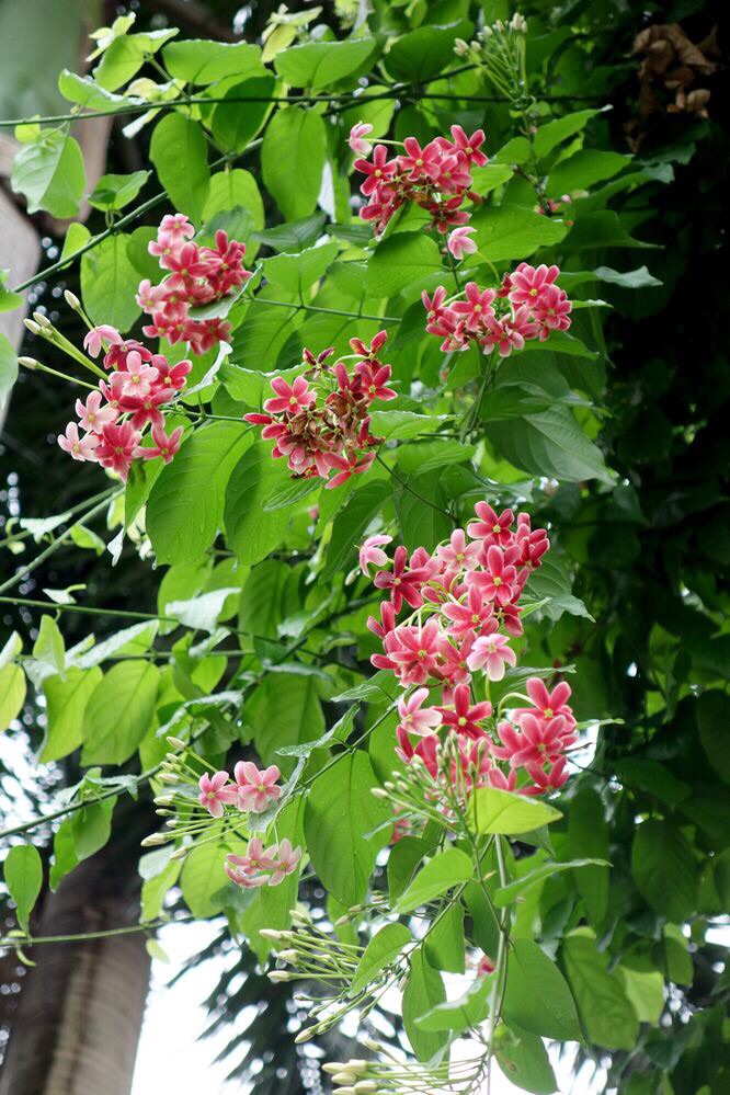 使君子,别名:舀求子、史君子、四君子,(学名:Quisqualis indica Linn.)是使君子科、使君子属攀援状灌木,高2-8米;小枝被棕黄色短柔毛。叶对生或近对生,叶片膜质,卵形或椭圆形,先端短渐尖,基部钝圆,表面无毛,背面有时疏被棕色柔毛,幼时密生锈色柔毛。顶生穗状花序,组成伞房花序式;苞片卵形至线状披针形,被毛;具明显的锐棱角5条,成熟时外果皮脆薄,呈青黑色或栗色;白色,圆柱状纺锤形。花期初夏,果期秋末。种子为中药中最有效的驱蛔药之一,对小儿寄生蛔虫症疗效尤著。