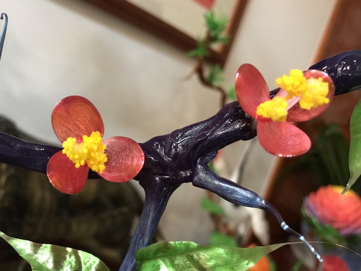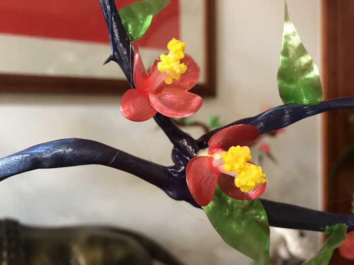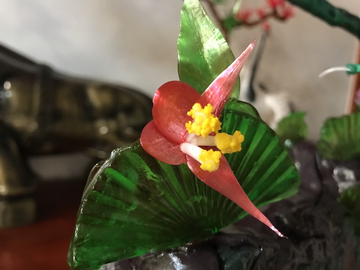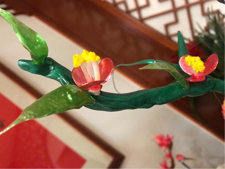 这是孔雀作品中截取的花,有点贴梗海棠的味道。问朋友这是什么花, 他说瞎弄的也不知什么花