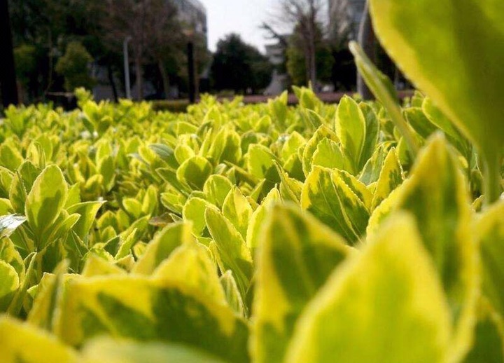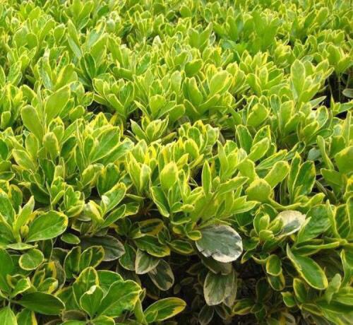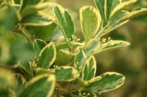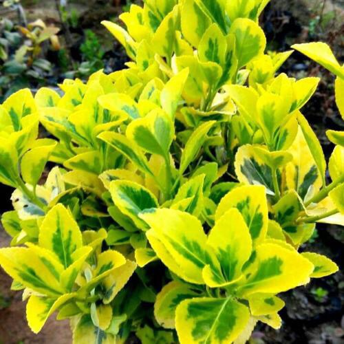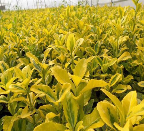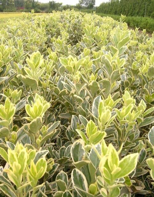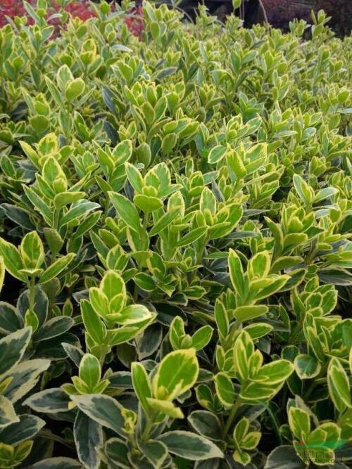 金边黄杨,又名:金边冬青卫矛、正木、金边七里香。卫矛科卫矛属植物,冬青卫矛的变种之一。属常绿灌木或小乔木,小枝略为四棱形,枝叶密生,树冠球——单叶对生,倒卵形或椭圆形,边缘具钝齿,表面深绿色,叶缘金黄色,有光泽。聚伞花序腋生,具长梗,花绿白色。蒴果球形,淡红色,假种皮桔红色。