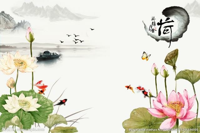 屈原在《离骚》中有“制菱荷以为衣兮,集芙蓉以为裳”之佳句;唐太宗李世民在他的《采芙蓉》中有“船移分细浪,风散动浮香。游莺无定曲,惊凫有乱行。莲稀钏声断,水广棹歌长。栖乌还密树,泛流归建章。”