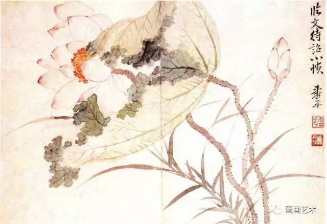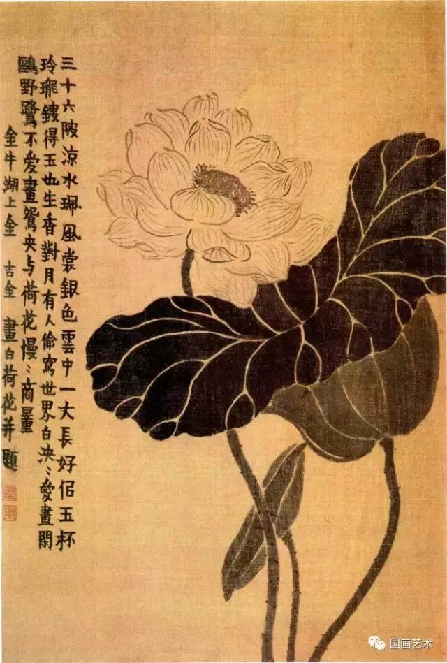 诗中有画,画中有诗;诗是无形之画,画是有形之诗。书骨、乐韵、诗魂乃画之“三昧”。将诗作为画中之魂,是历代画家的毕生追求。画家笔下的荷花,并非自然物的再现,而是饱含作者本人的情感和经过艺术加工的意中之花;它似人又似花,似花又是人,人即花,花即人。人看花,人到花中去;花看人,花到人间来。花替我代言,我替花传神。这种借物写心,物我相照的表现手法,正是中国画所特有的本质内涵。