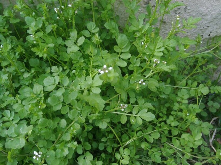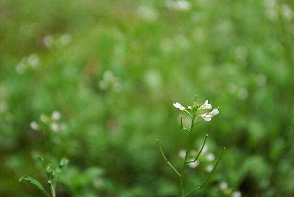 碎米荠(Cardamine hirsuta L. ):为罂粟目、十字花科、碎米荠属一年生小草本,高15-35厘米。茎直立或斜升,下部有时淡紫色,上部毛渐少。基生叶具叶柄,顶生小叶肾形或肾圆形;茎生叶具短柄;全部小叶两面稍有毛。总状花序生于枝顶,花小,花梗纤细;萼片绿色或淡紫色,长椭圆形,外面有疏毛;花瓣白色,倒卵形。长角果线形,稍扁,无毛;果梗纤细,直立开展。种子椭圆形,顶端有的具明显的翅。花期2-4月,果期4-6月。