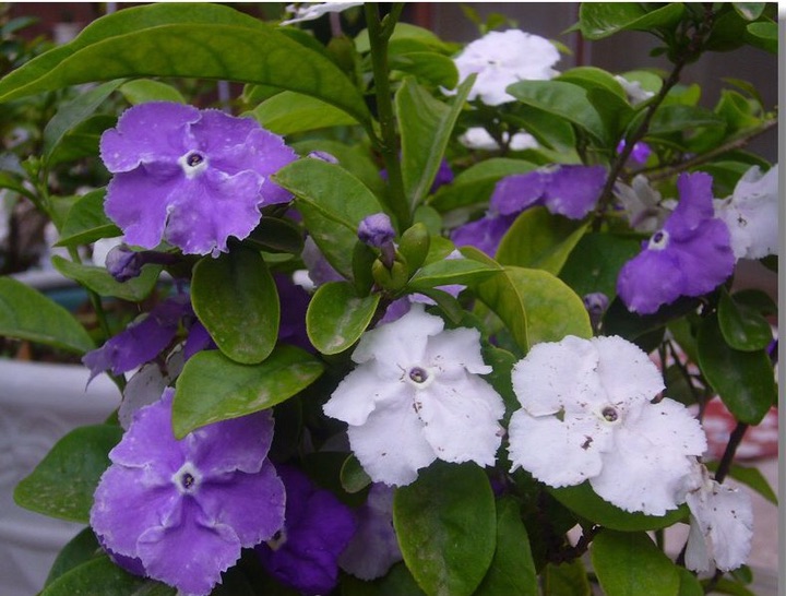 双色茉莉株高可达1米。双色茉莉为茄科、鸳鸯茉莉属,常绿灌木,株高30~100厘米,茉莉花花色高雅洁白,还带有清香的味道,不但具有观赏价值,而且家里放一盆,空气清新剂都可以省掉了。