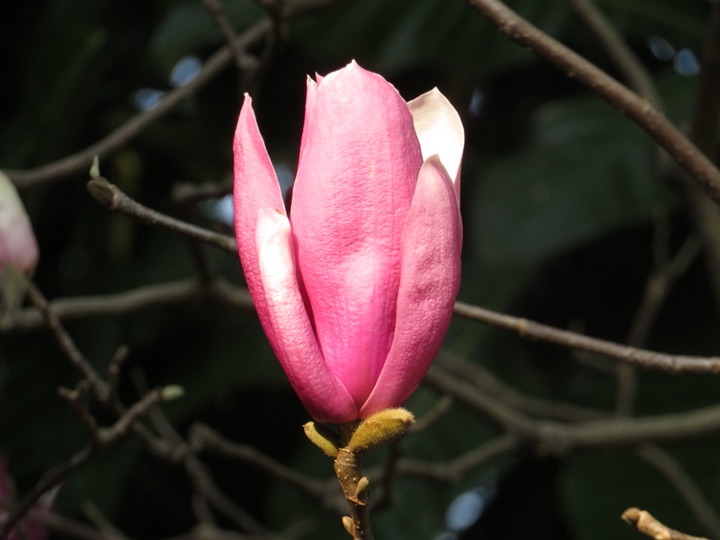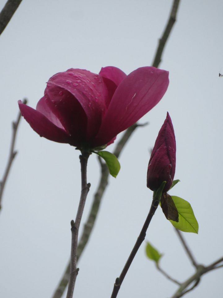 :正好相反。紫玉兰的花瓣内外都是紫色的,二乔玉兰则是外紫内白的。