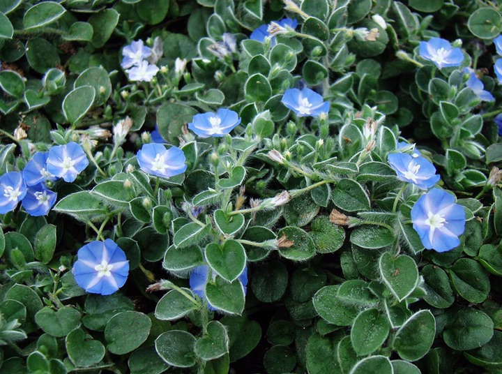 土丁桂,别名:毛辣花、白鸽草、白毛将、白头妹、过饥草、毛将军、银花草、暴臭蛇、烟油花,拉丁文名:Evolvulus alsinoides (L.) L. 旋花科、土丁桂属多年生草本,茎少数至多数,平卧或上升,细长,具贴生的柔毛。叶长圆形,椭圆形或匙形,我国长江以南各省及台湾省有分布。灌丛及路边。自热带东非洲,马达加斯加,经印度,中南半岛,马来亚至菲律宾均有分布。全草药用,有散瘀止痛,清湿热之功能.