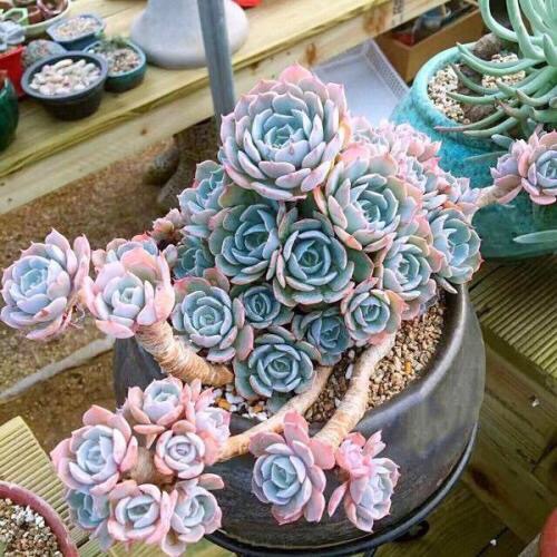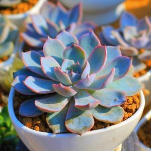 皮氏石莲是景天科、拟石莲花属的多肉植物,也被称作蓝石莲。莲座中小型,直径10-15厘米,灰绿色的叶片被有一层淡蓝色的霜粉,在阳光充足且具一定温差的环境下会变成粉红色。