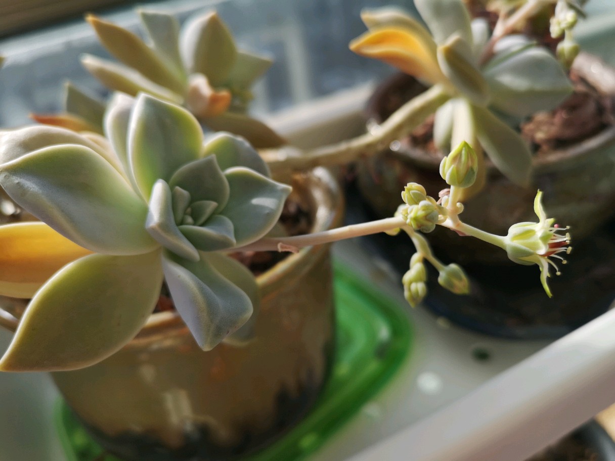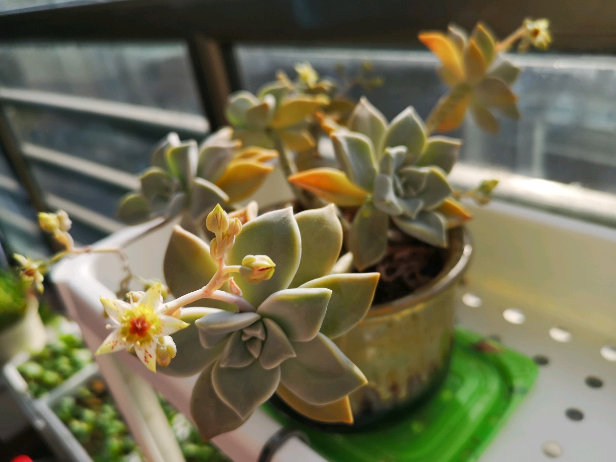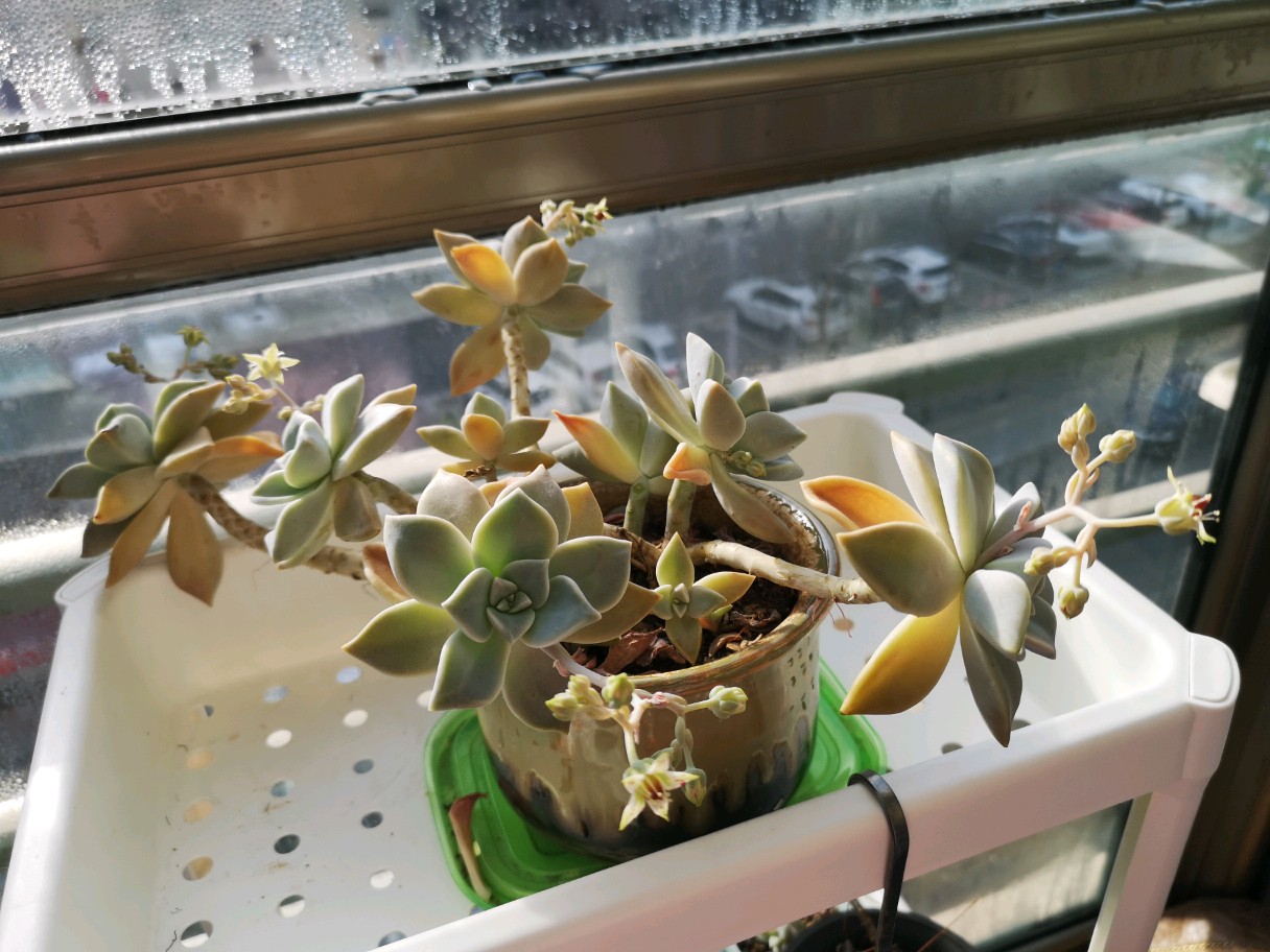 养多肉的行家们都说,多肉开花影响生长,甚至会导致肉肉死亡,因此建议只要肉肉长出花茎就立刻剪掉。我的这一盆肉肉一直露养,也年年开花,我从来不剪,任她自由自在的生长。