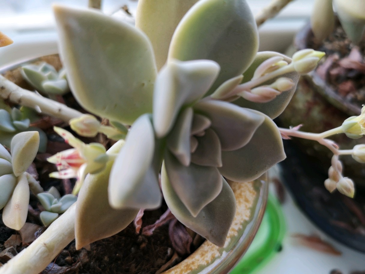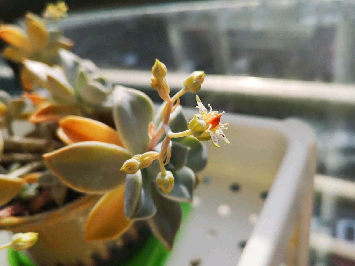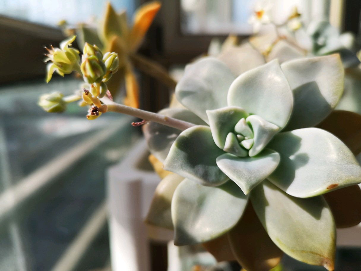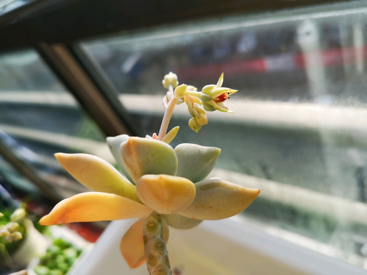 养多肉的行家们都说,多肉开花影响生长,甚至会导致肉肉死亡,因此建议只要肉肉长出花茎就立刻剪掉。我的这一盆肉肉一直露养,也年年开花,我从来不剪,任她自由自在的生长。