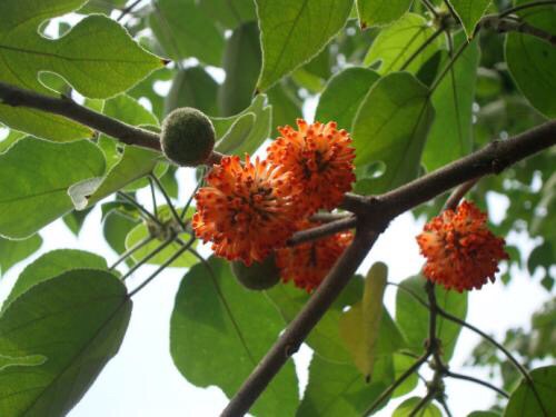 构树(学名Broussonetia papyrifera)别名褚桃等,为落叶乔木,高10 - 20m;树皮暗灰色;小枝密生柔毛。树冠张开,卵形至广卵形;树皮平滑,浅灰色或灰褐色,不易裂,全株含乳汁。为强阳性树种,适应性特强,抗逆性强。