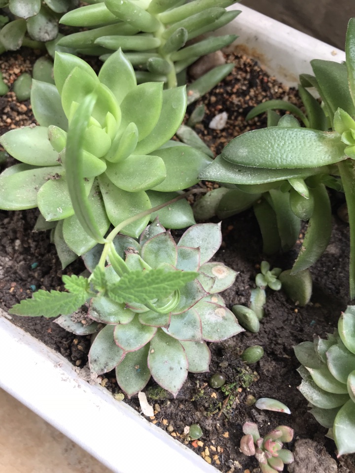 我去年种过一盆波斯菊,冬天全死了,现在这个盆用来种肉肉,结果又长了一株波斯菊…