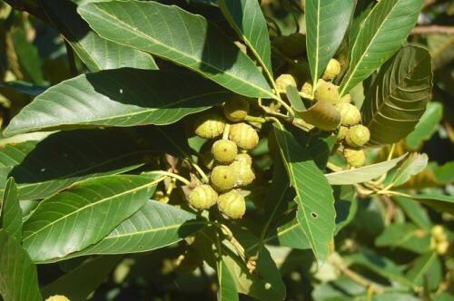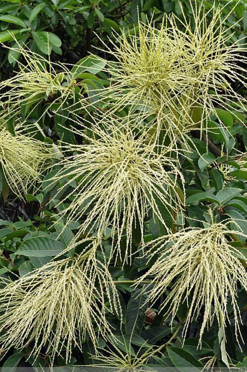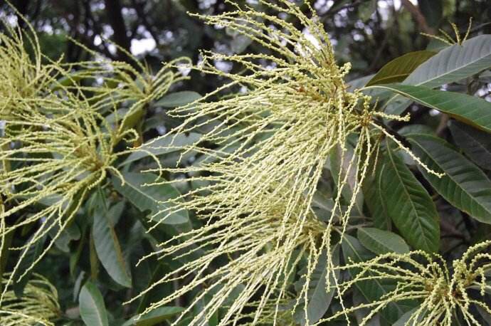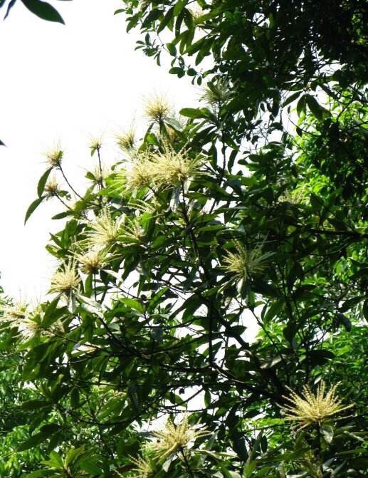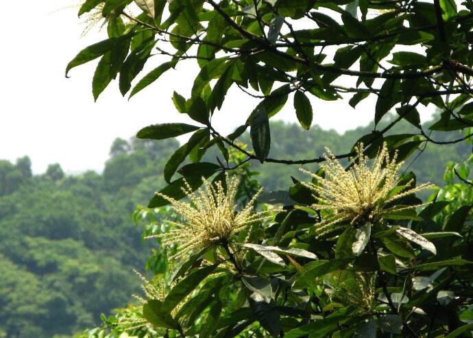黧蒴锥(学名:Castanopsis fissa (Champ. ex Benth.) Rehd. et Wils.)是壳斗科,锥属乔木,高可达20米,胸径60厘米。嫩枝红紫色,叶片形、质地及其大小均与丝锥类同。雄花多为圆锥花序,壳斗被暗红褐色粉末状蜡鳞,小苞片鳞片状,成熟壳斗圆球形或宽椭圆形,通常全包坚果,壳壁厚,裂瓣常卷曲;坚果圆球形或椭圆形,果脐位于坚果底部,4-6月开花,10-12月结果。