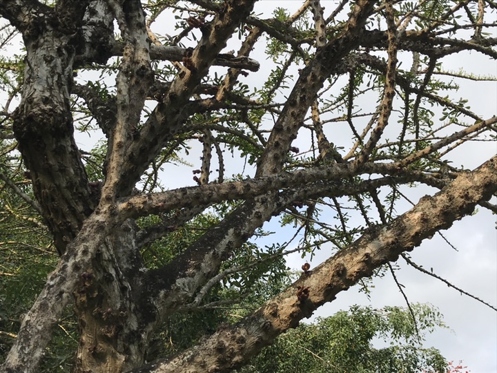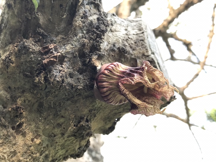 叉叶木又叫十字架树,19世纪由天主教法国传教士传入中国。叉叶木叶簇生于小枝上或树干上,小叶3枚,三叉状生长,形状像十字架,故又叫十字架树;花一至两朵直接生于主枝或老枝上,无柄,花冠佛焰苞状,具紫褐色斑纹,花期每年10-12月。