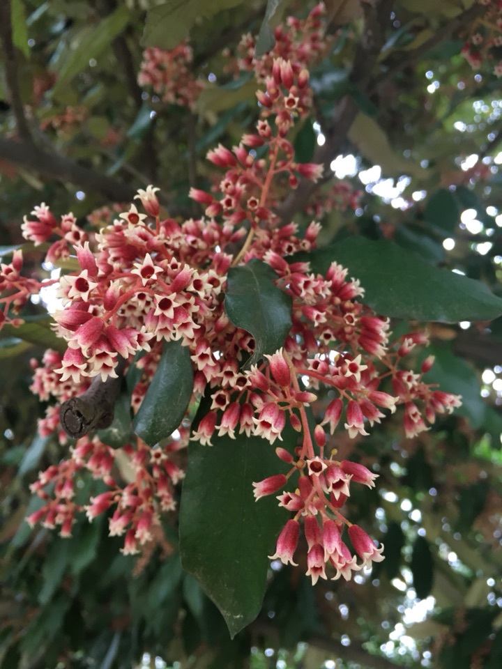 密密麻麻的粉紫色的小花朵布满了枝头,大有一种铺天盖地的感觉。园锥花序腋生或顶生,无花瓣,看到的是花萼。微风吹过满地的落英煞是好看。