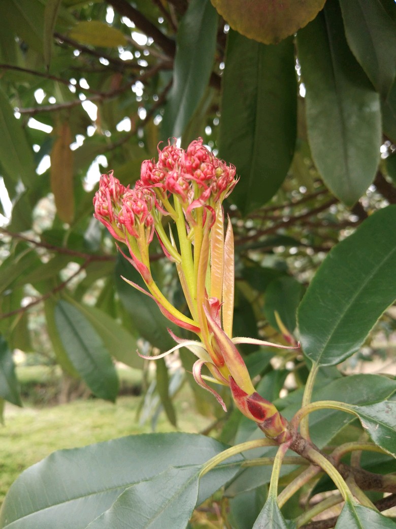 石楠发了新芽,就像火炬的火苗一样席卷了整棵树,红红的点亮了春天。