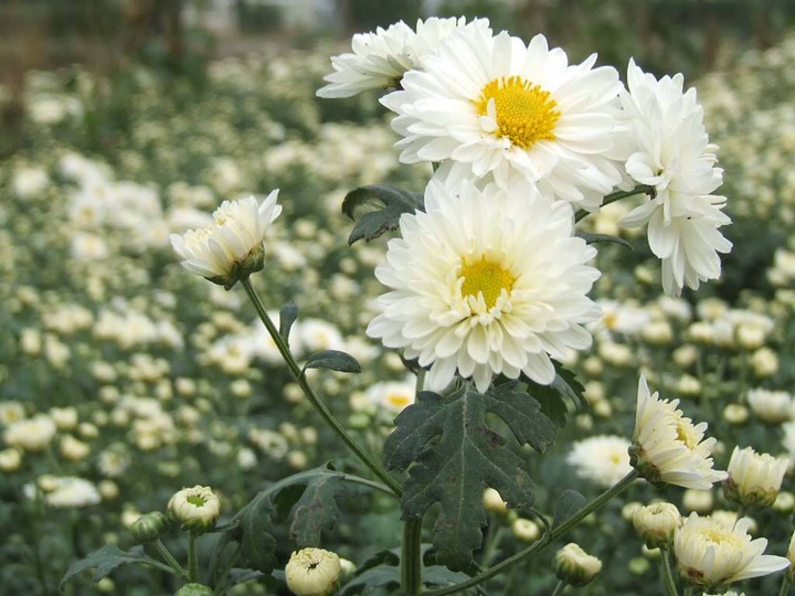 药用菊花一般分三种,白菊花、黄菊花(杭菊)和野菊花。有平肝阳、降压、明目作用(选白菊花)。用于疏散风热(如感冒)选黄菊。而对治疗痈疽,宜选清热解毒作用较重的野菊花。