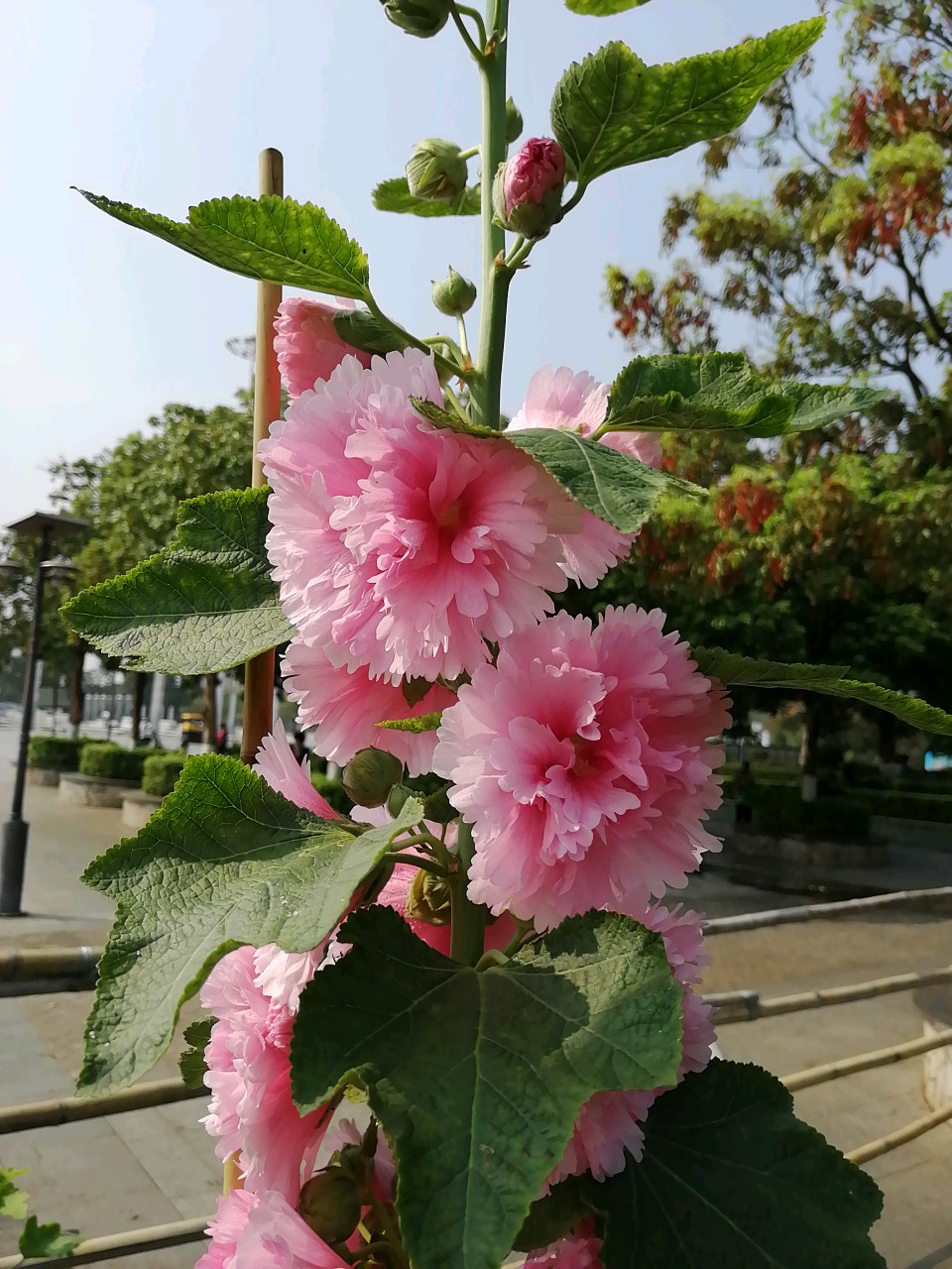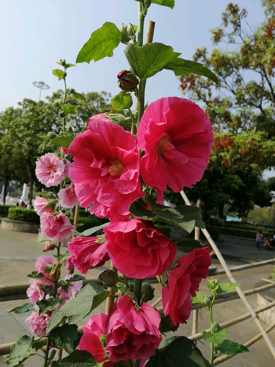 春暖花开,正是蜀葵花开的时候,一簇簇繁花似锦,真的好漂亮!。