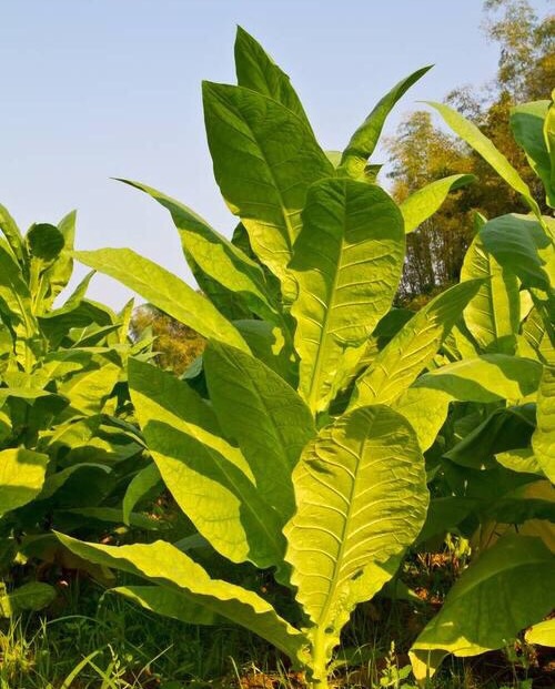 烟草(学名:Nicotiana tabacum L.)是茄科烟草属植物,一年生或有限多年生草本,全体被腺毛;根粗壮。茎高0.7-2米,基部稍木质化。叶矩圆状披针形、披针形、矩圆形或卵形,顶端渐尖,基部渐狭至茎成耳状而半抱茎。花序顶生,圆锥状,多花;花梗长5-20毫米。蒴果卵状或矩圆状,长约等于宿存萼。种子圆形或宽矩圆形,径约0.5毫米,褐色。夏秋季开花结果。