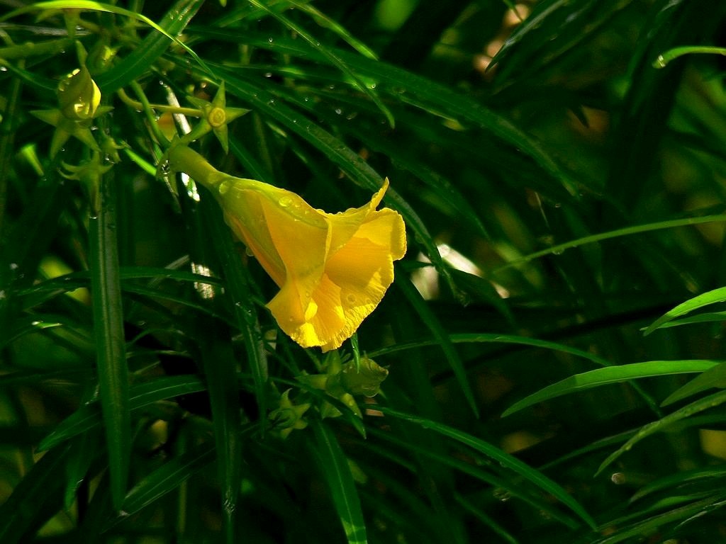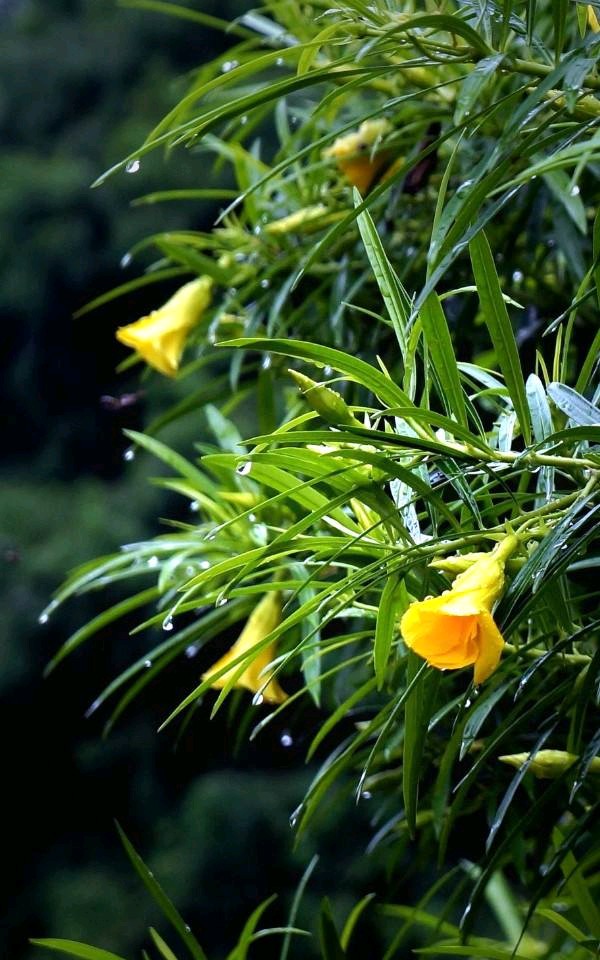 黄花夹竹桃上的露珠非常可爱😍️😍️😍️