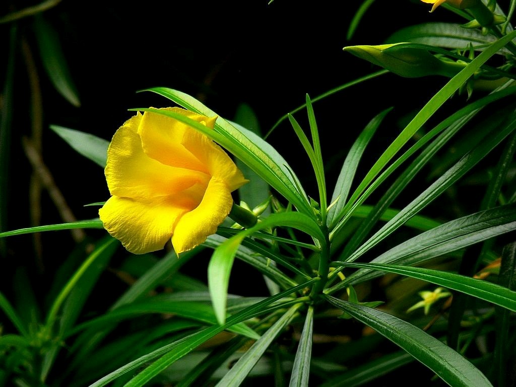 黄花夹竹桃喜高温多温气候,原产于美洲热带、西印度群岛及墨西哥一带,中国则分布于台湾、福建、广东等地。因其叶形纤细,花朵黄色,鲜艳夺目,可用于公园、庭园绿化
