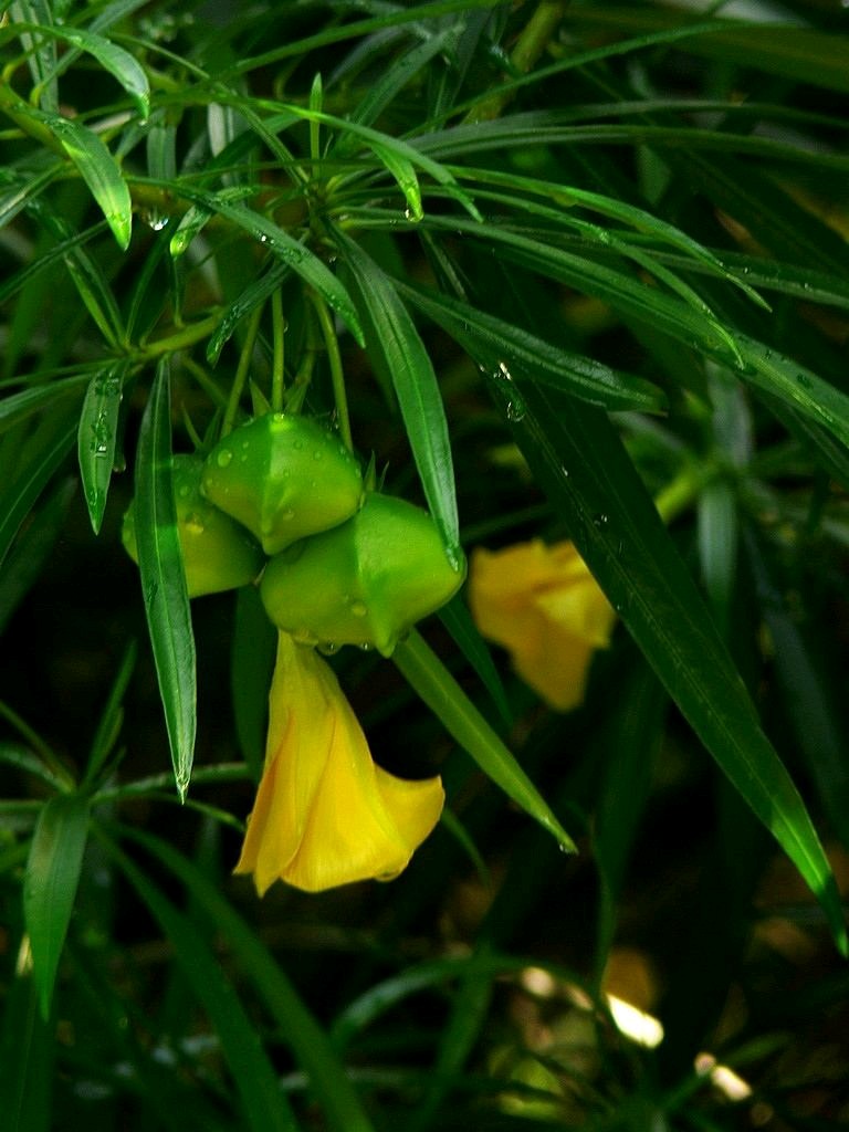 黄花夹竹桃又名:酒杯花、柳木子、黄花状元竹。