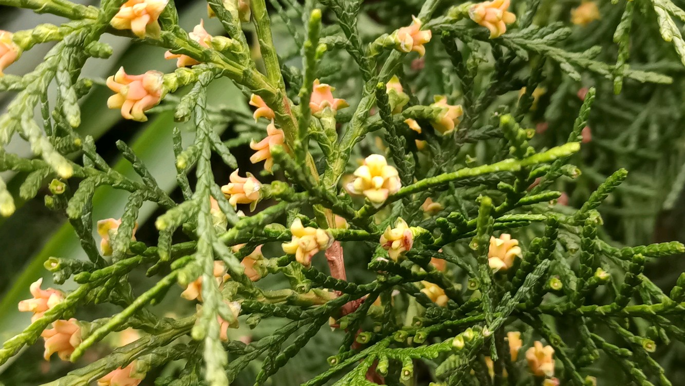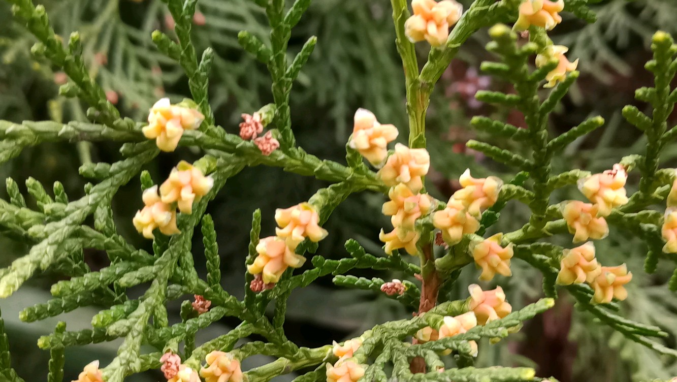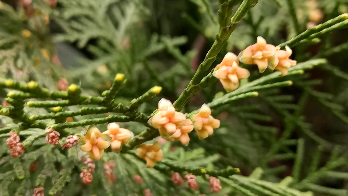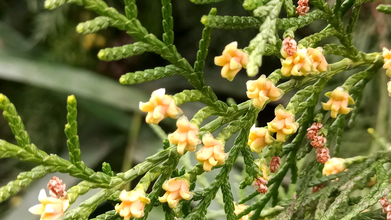 侧柏,开花了