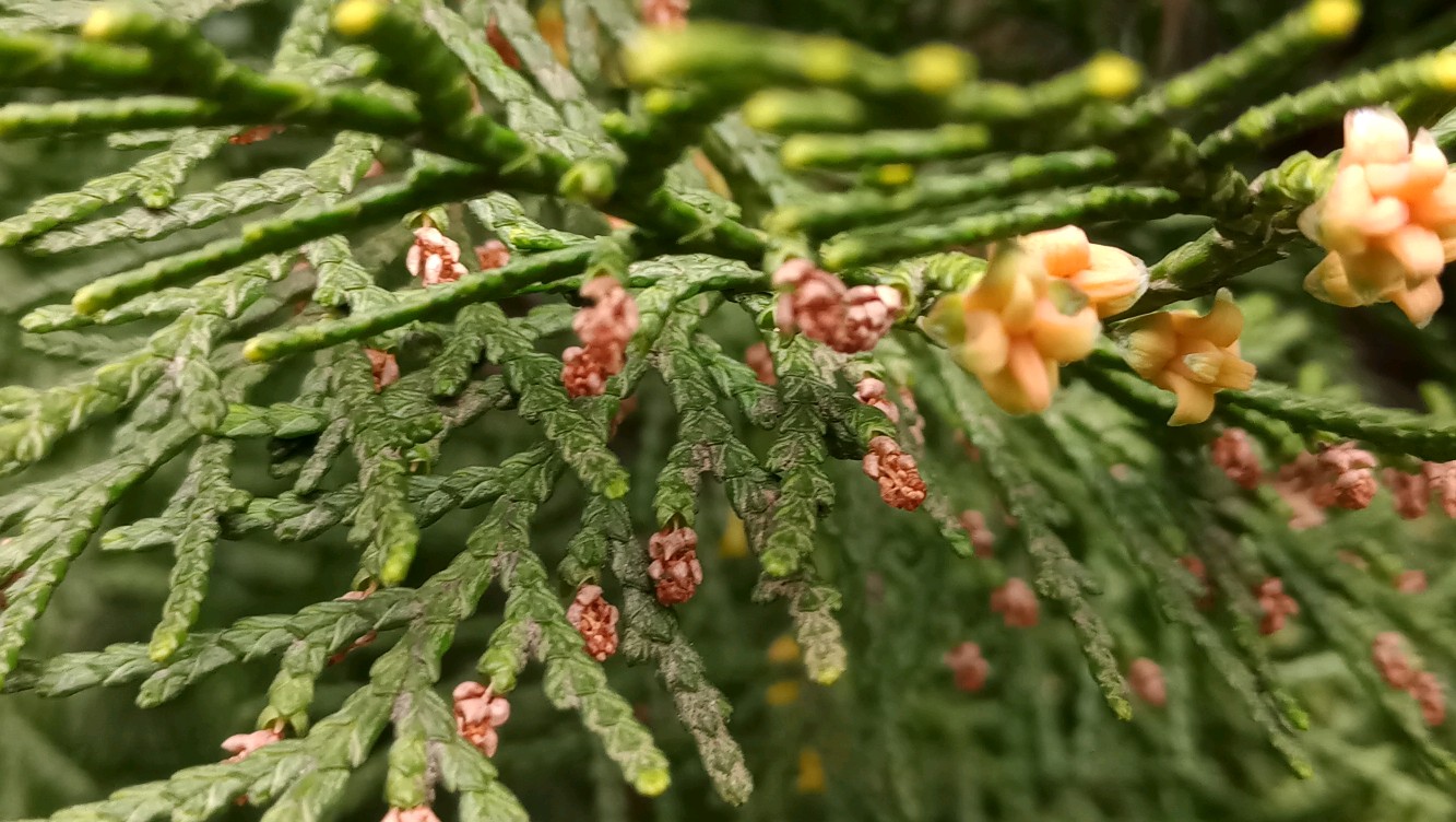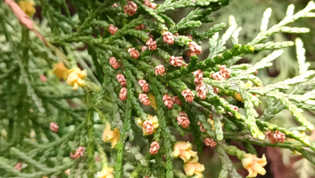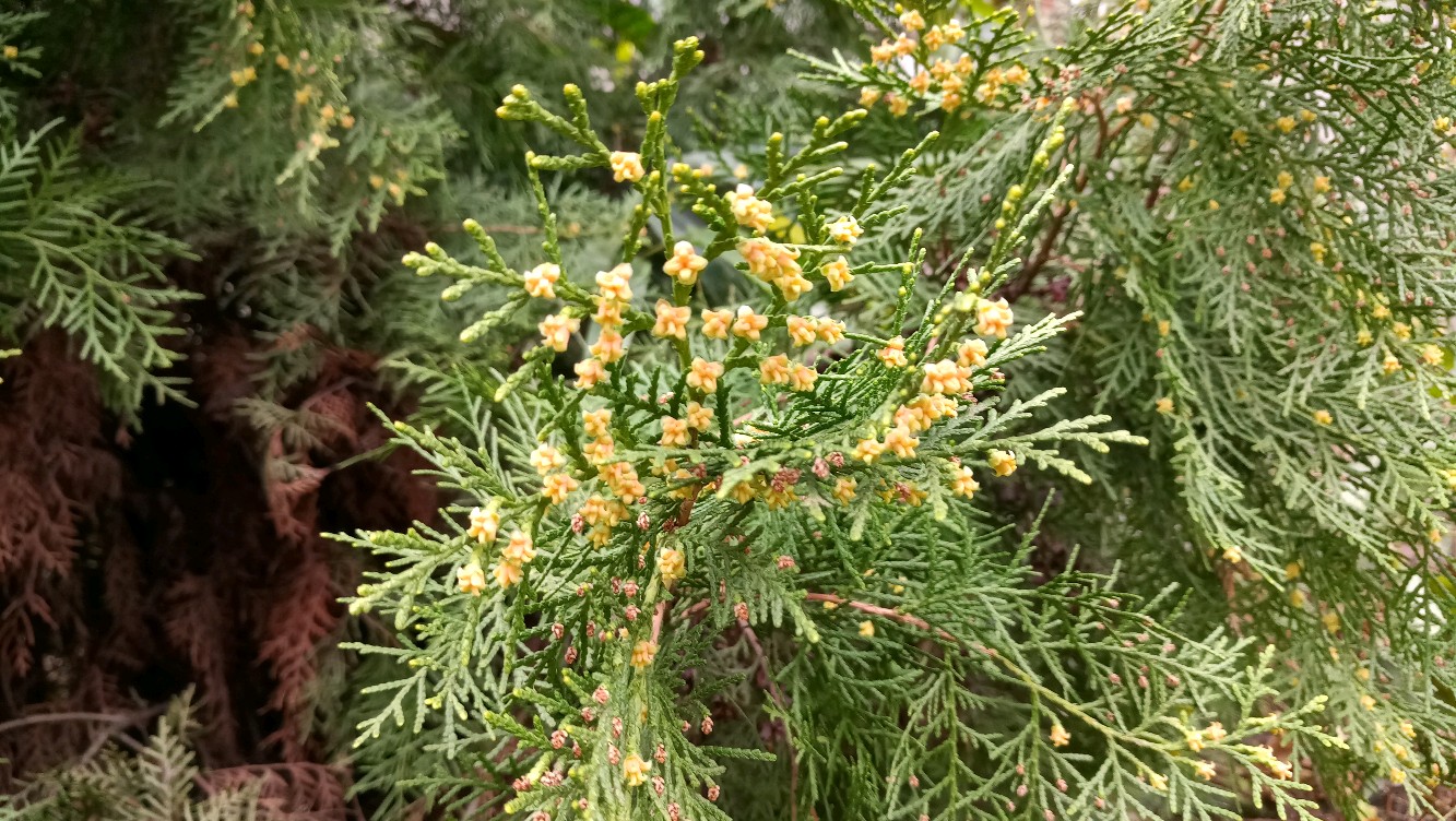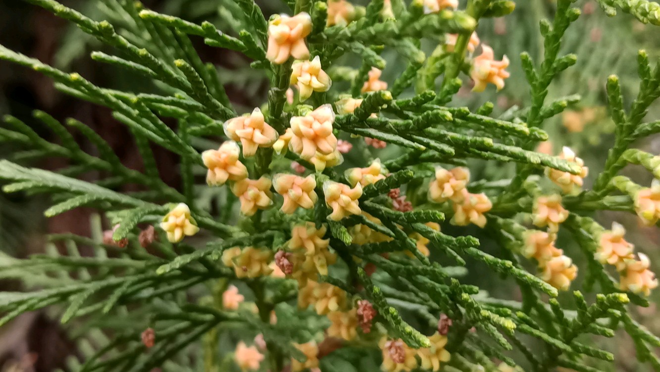 侧柏,开花了