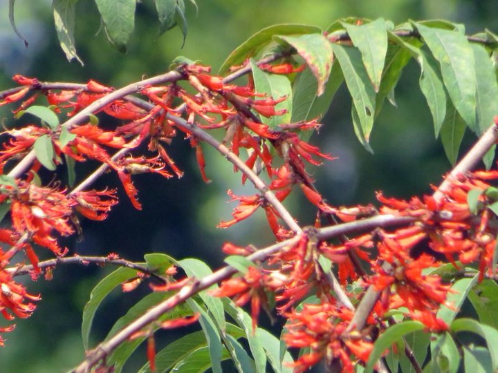 华南植物园的苏铁园内一株红红火火的虾子花开得正欢,不但引来了小鸟们前来戏耍、啄食,还招来了不少的拍鸟者的静侯围拍。