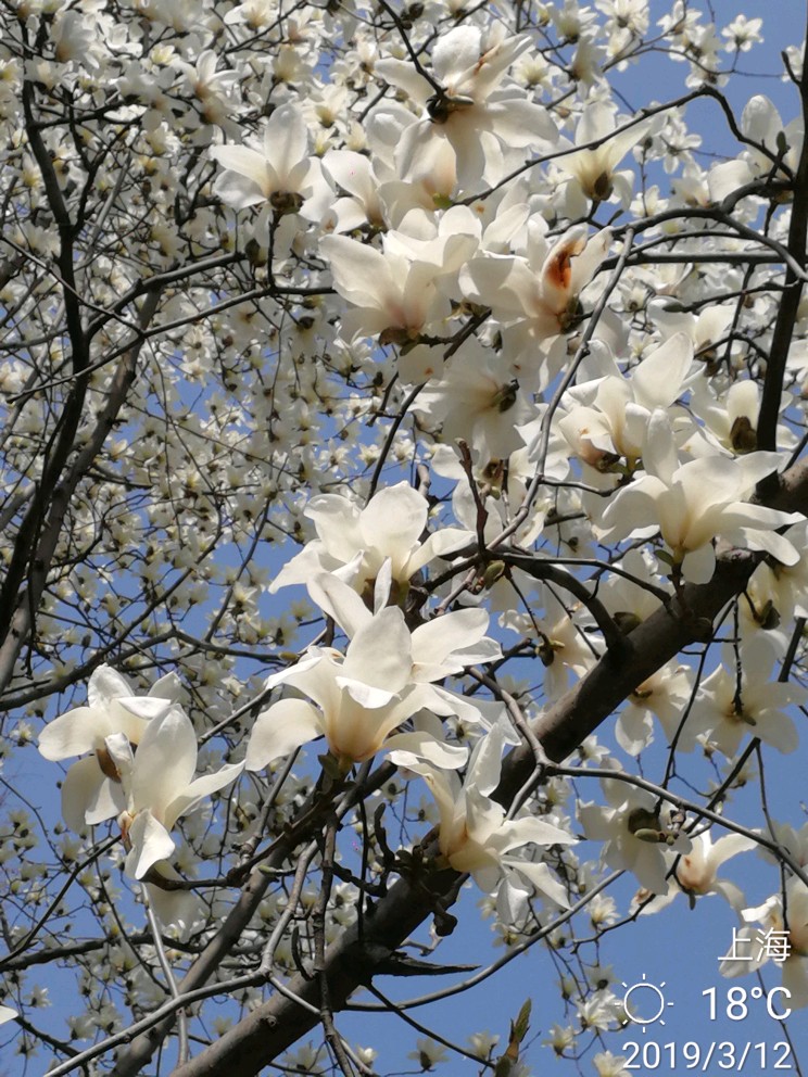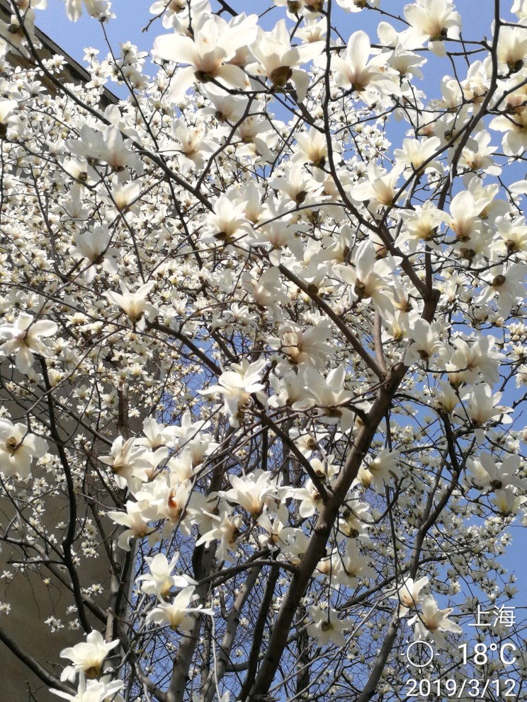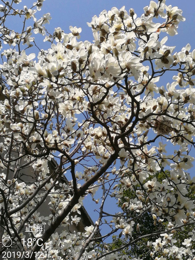这两天天气不错,白玉兰怒放了!洁白一片。